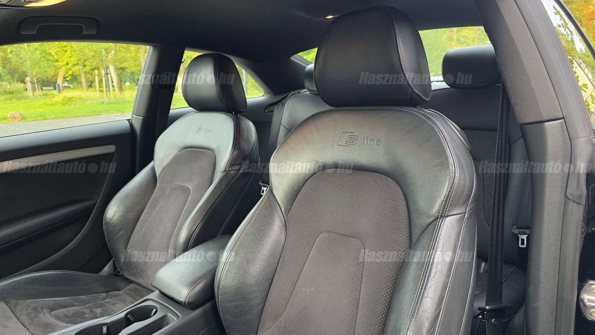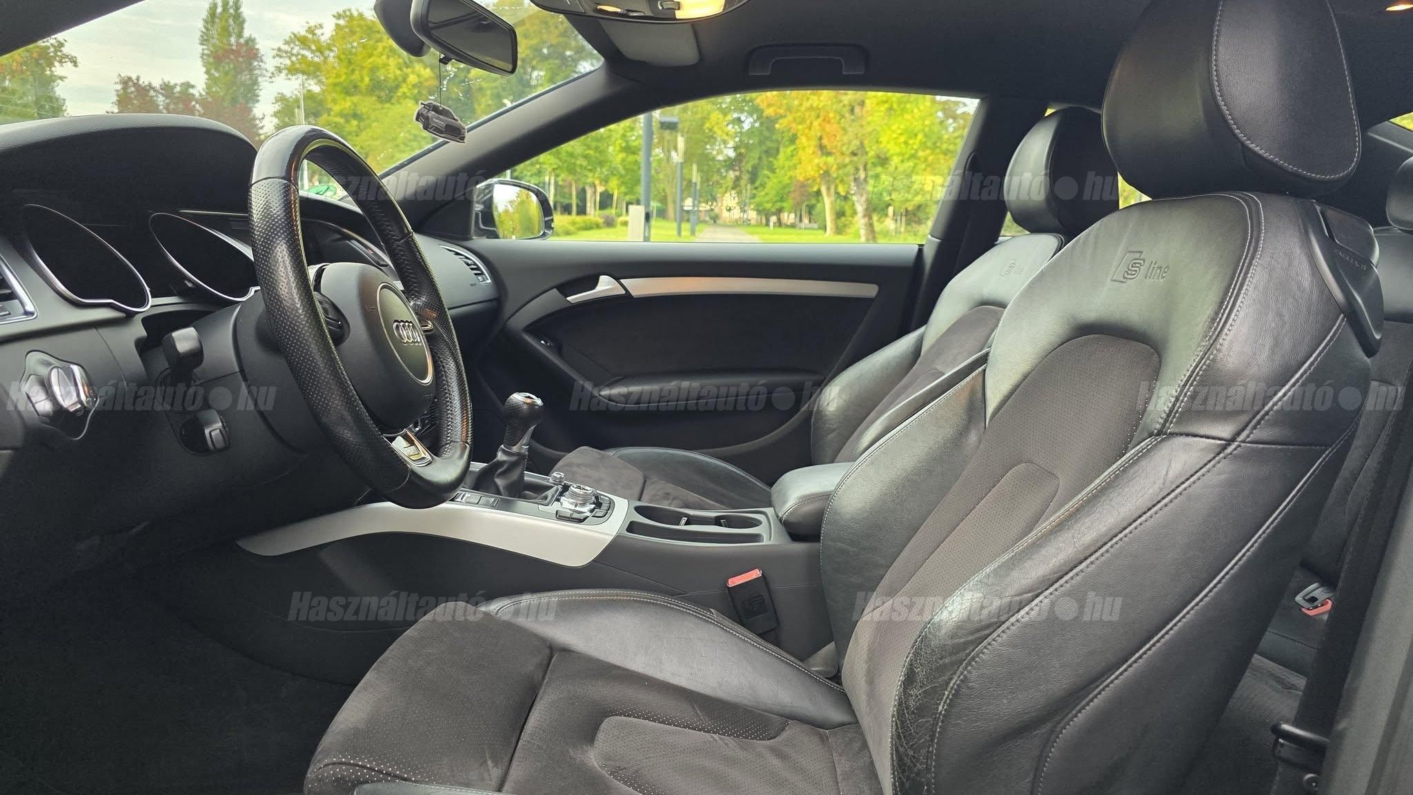 További 80 nagy felbontású kép: facebook/ingolstadtauto oldalunkon! AZ AUTÓK MEGTEKINTÉSÉHEZ MINDEN ESETBEN ELŐZETES TELEFONOS EGYEZTETÉS SZÜKSÉGES! ---------- RÉSZLET FIZETÉSSEL IS ELVIHETŐ: Nincs hitelbírálat, nem gond a BAR lista, nem kérünk jövedelemigazolást sem. Kezdő részlet: 3.5 millió Ft További részletek: 12 x 265.000Ft -havi részletekben egy éven át. NEM tartalmazza a kötelező biztosítás és a CASCO költségét, melyek feltételei a szerződés megkötésének. Magasabb kezdő részlet befizetése esetén a további havi részletek alcsonyabbak lehetnek. Alacsonyabb kezdő részlet befizetésére nincs lehetőség! További feltételekért és információkért keressen minket személyesen vagy telefonon. BANKI HITELÜGYINTÉZÉSben is tudunk segíteni ez 12-84 hónapig terjedő periódusra ütemezhető. Legalább 20% önrésszel vehető fel.---------- TÍPUS / ÁLLAPOT ----------A típusról: Az A5 Coupét 2007-ben mutatta be az Audi a Genfi Autószalonon, kiemelkedően nagy sikert aratva. Mai napig egy nagyon szép, kortalan sportkupé forma. Ez az autó már az FL (facelift) verzió, ami 2011-től volt kapható. A 245 lóerős, 3 literes dízelmotorral és a 6 sebességes kézi váltóval igazán sportos vezetési élményt kapunk, emellett pedig a fogyasztás sem magas: városban 9,0 l/100 km, országúton pedig 6,5 l/100 km, ami egy V6 TDI-től igencsak kedvező.Az adott autóról: Az autónak szép homogén a fényezése, kisebb esztétikai hibák vannak rajta. A jobb hátsó sárvédő volt javítva, vélhetően apróbb pakolási sérülés miatt, szakszerűen lett fényezve. A gyári hűtőrács ki lett cserélve mélysejtrácsos RS rácsra. Minden tartozék, összes gyári dokumentáció és 2 db eredeti kulcs rendelkezésre áll, az autó végig vezetett szervizkönyvvel rendelkezik. Nagyon megkímélt beltér, kopás-, karc- és kiülésmentes. Szerkezetileg és motorikusan hibátlan, minden extra tökéletesen működik---------- EXTRÁK ----------19 colos Segment felniAlcantara kárpitozásFekete S line tetőkárpitEgyzónás digitális klímaAudi Drive Select menetdinamikai szabályozórendszer (4 alap + 1 programozható karakterisztika: váltó/motor, gázreakció, kormányzás, rugózás)LED nappali menetfényEső- és fényszenzorTempomatISOFIX gyermekülés-rögzítési pontokASR kipörgésgátlóTolatóradarStart Stop rendszerCombtámaszos sportülések (S line logóval)Fűthető első ülésekBi-Xenon fényszóróLámpamosóBőrrel bevont könyöklő3x S line (külső belső futómű)Sportkormány (S line logóval)MMIMultikormányHangvezérlésKüszöbspoilerAUTÓINKAT 1-3 ÉVIG TERJEDŐ GARANCIÁVAL IS TUDJUK ÉRTÉKESÍTENI, MEGÁLLAPODÁS SZERINT. Autóbeszámítás vagy bármilyen kérdés esetén a lenti telefonszámon keressen vagy WhatsApp-on, Viberen is elérhetőek vagyunk (email-t ne írjon!). TOVÁBBI KÜLÖNLEGES AUDIKÉRT KÖVESSE KÍNÁLATUNKAT FACEBOOKON: INGOLSTADTAUTO |