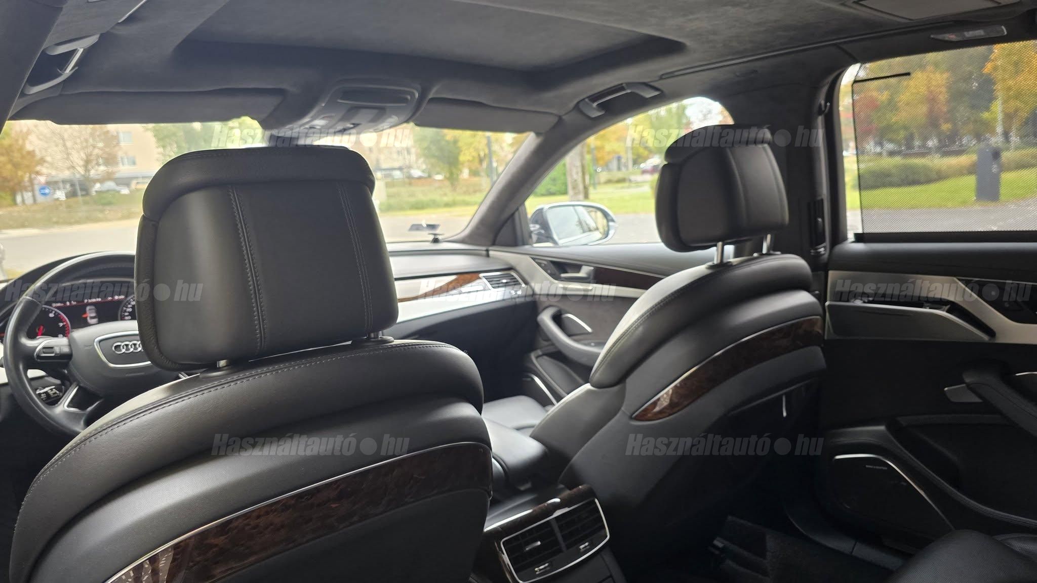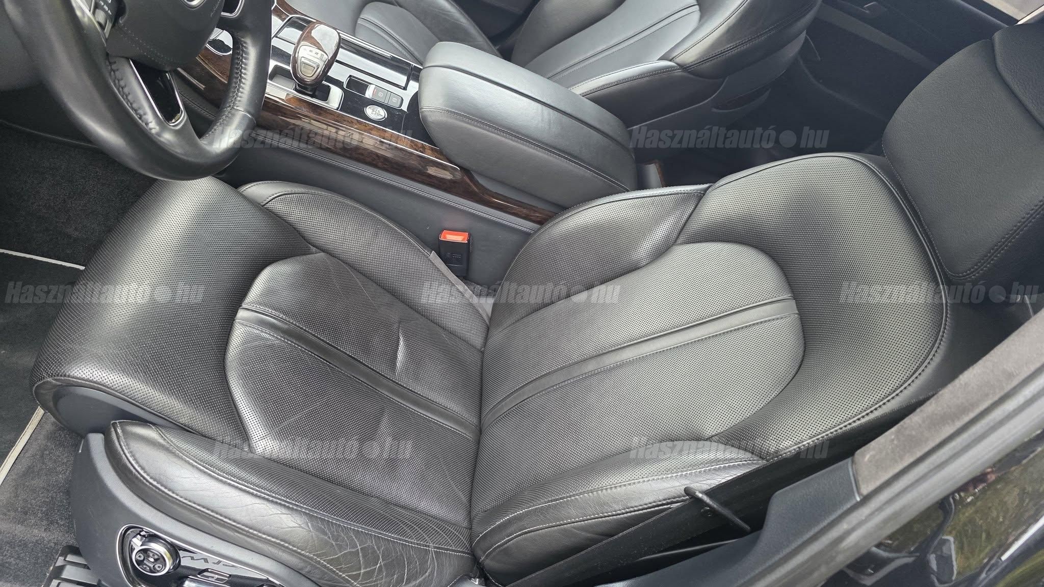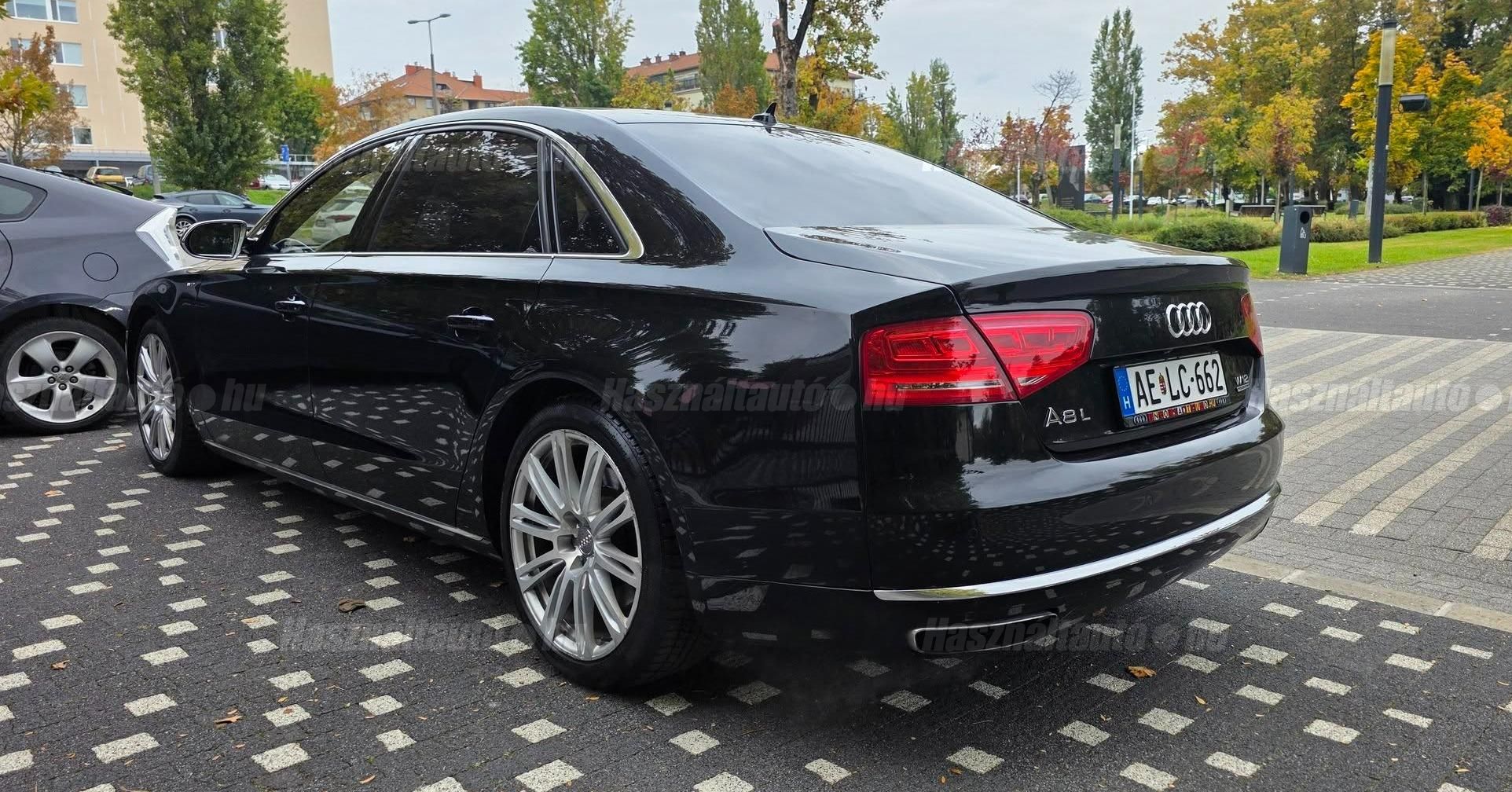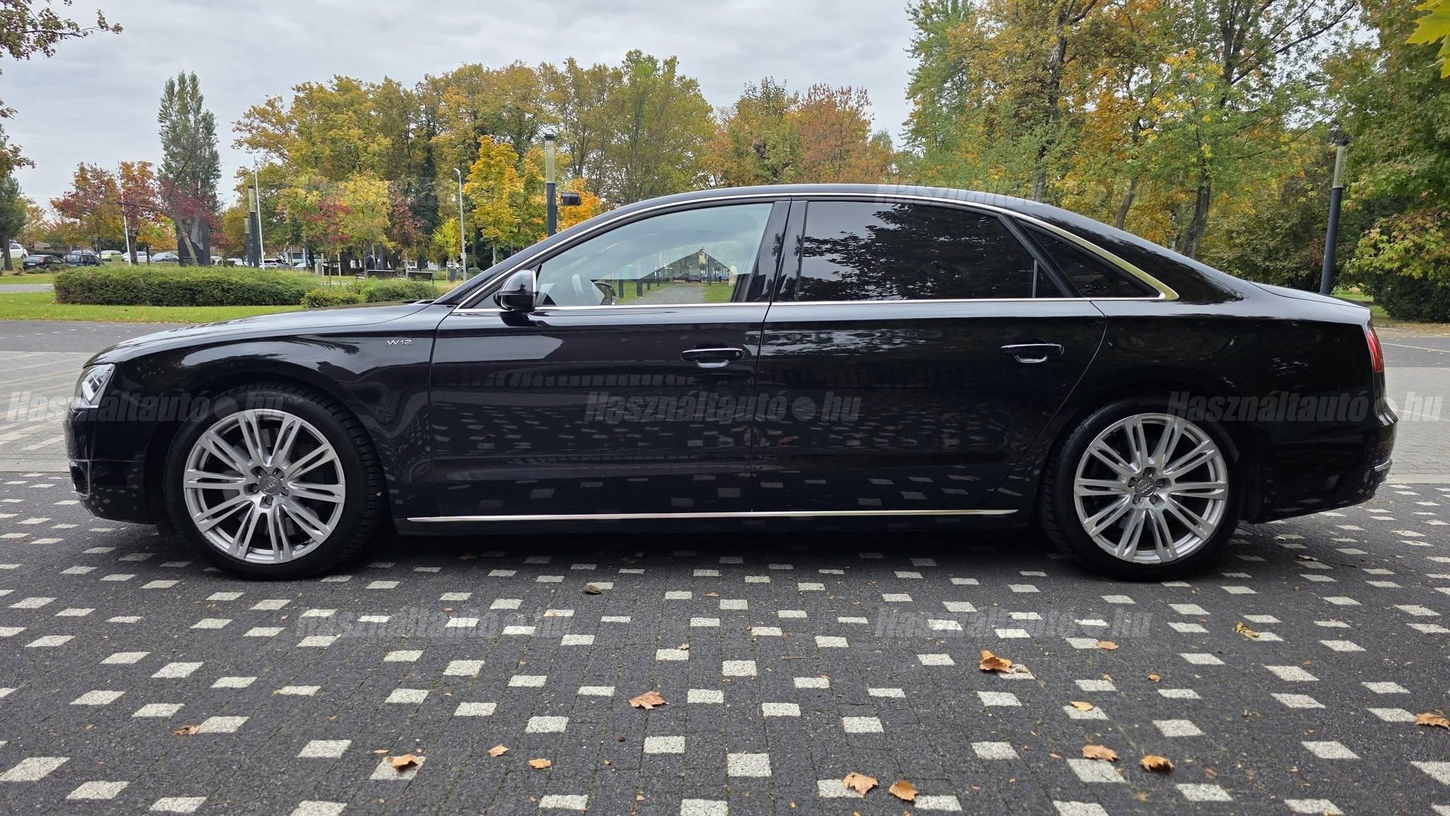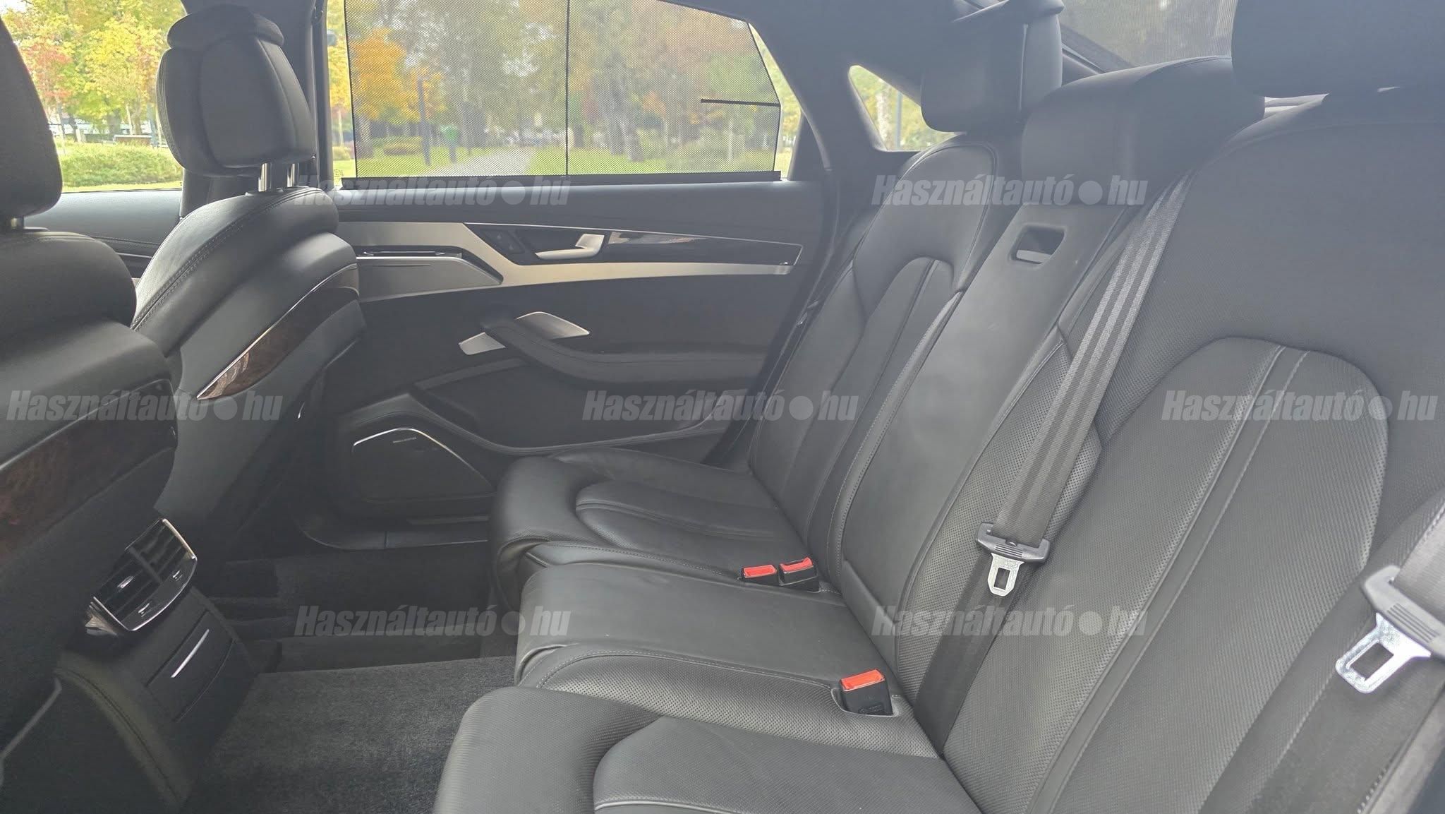 További 50 nagy felbontású kép: facebook/ingolstadtauto oldalunkon! AZ AUTÓK MEGTEKINTÉSÉHEZ MINDEN ESETBEN ELŐZETES TELEFONOS EGYEZTETÉS SZÜKSÉGES! BANKI HITELÜGYINTÉZÉSben is tudunk segíteni ez 12-84 hónapig terjedő periódusra ütemezhető. Legalább 20% önrésszel vehető fel.----------TÍPUS / ÁLLAPOT----------A TÍPUSRÓL: Egy igazán különleges A8-as került hozzánk bizományos értékesítésre, ami nem más, mint egy 6.3 literes szívó benzinmotoros W12-es kuriózum. A W12 már önmagában megér pár érdekességet, ezek között van, hogy ez a motor 2001-ben debütált, ám a D4 generációs Audi A8 már nem az eredeti hatliteres változatot, hanem annak továbbfejlesztett 6.3 literes FSI-verzióját kapta. A közvetlen befecskendezésnek köszönhetően a teljesítmény 450-ről 500 lóerőre emelkedett. Ez a 12 hengeres motor meglepően kompakt felépítésű, még a márkán belül lévő 4.2 V8-nál is kisebb. Ennek a konstrukciónak ez a legutolsó példánya, a motornak a gyártását ezután befejezték. A szokásos, jól ismert és megbízható Quattro összkerék-meghajtás természetesen itt is van, amivel biztonságosan tudunk közlekedni, legyen az bármilyen időjárási körülmény. Ebben a csúcsbenzinesben az Audi nagy váltója, a nyolcsebességes Tiptronic pakolja a fokozatokat.AZ ADOTT AUTÓRÓL: Az autó fényezése nagyon szép és homogén. A jobb oldalán történt korábban javítás, nem mérhetőek nagy értékek, ilyen 220300 mikron között, egyedül a jobb hátsó sárvédőn volt nagyobb beavatkozás, ott egy-két helyen lehet 800 mikront is mérni. A gépháztető újra lett fényezve, vélhetően kavicsfelverődés miatt. A munkák szakszerűen és igényesen készültek, szabad szemmel semmi nem utal korábbi sérülésre. Az autón történt egy kiemelkedően nagy szerviz a közelmúltban, kapott egy 50.000 km-t futott új motort, ezenkívül pedig fel lett újítva a sport differenciálműve. Az autó jelenleg költségmentes állapotban van. A felnik állapota szép, kisebb parkolási sérülések láthatók. A gumik téliek, jó állapotban vannak.A beltér tiszta, szakadás- és kopásmentes. Az autóhoz tartozik a szervizkönyv, valamint minden dokumentum, amely igazolja a futott kilométert. Minden gyári tartozék, dokumentáció, két eredeti kulcs és az állófűtés távirányítója is megvan.Szerkezetileg, motorikusan és a váltó működését tekintve is hibátlan állapotú, minden extra tökéletesen működik.----------EXTRÁK----------Elektromosan állítható első ülésekÜlésfűtés elöl-hátulÜlésszellőztetés elölElső ülések masszázs funkcióval (3 különböző mód)Ülésmemória a vezetőülésnélÜlésmemória az anyósülésnélFaberakásNapelemes napfénytetőBőrrel bevart könyöklőkBőrrel bevart ajtórekeszekSIM-kártya leolvasóKét SD-kártya foglalatHátul elektromos rolóHátsó ajtóknál felhúzható elektromos rolóÉjjellátó funkcióElektromos kormányoszlopGyári beépített telefonAlcantara betétek az ajtóbanAlcantara tetőkárpitFull LED soros fényszórókBang & Olufsen hangrendszerHolttérfigyelőElső kameraStart/Stop rendszerSRA (fényszórómosó rendszer)FékasszisztensAudi ConnectMultikormánySzínezett hővédő üvegezés (B-oszloptól hátrafelé gyári sötétítéssel)KormányváltóTávolságtartó tempomat (ACC)4 zónás digitális klímaTolatókameraBőrkormányAutomatikusan sötétedő belső tükörElöl-hátul parkolóradarEső- és fényszenzorAudi Drive Select menetdinamikai szabályozórendszer (4 alap + 1 programozható karakterisztika: váltó/motor, gázreakció, kormányzás, rugózás)Kulcsnélküli indításASR kipörgésgátlóVisszagurulás-gátlóSzínezett hátsó üvegekISOFIX gyermekülés-rögzítési pontokASR kipörgésgátlóKomfort bejutásAUTÓINKAT 1-3 ÉVIG TERJEDŐ GARANCIÁVAL IS TUDJUK ÉRTÉKESÍTENI, MEGÁLLAPODÁS SZERINT. Autóbeszámítás vagy bármilyen kérdés esetén a lenti telefonszámon keressen vagy WhatsApp-on, Viberen is elérhetőek vagyunk (email-t ne írjon!). TOVÁBBI KÜLÖNLEGES AUDIKÉRT KÖVESSE KÍNÁLATUNKAT FACEBOOKON: INGOLSTADTAUTO |
