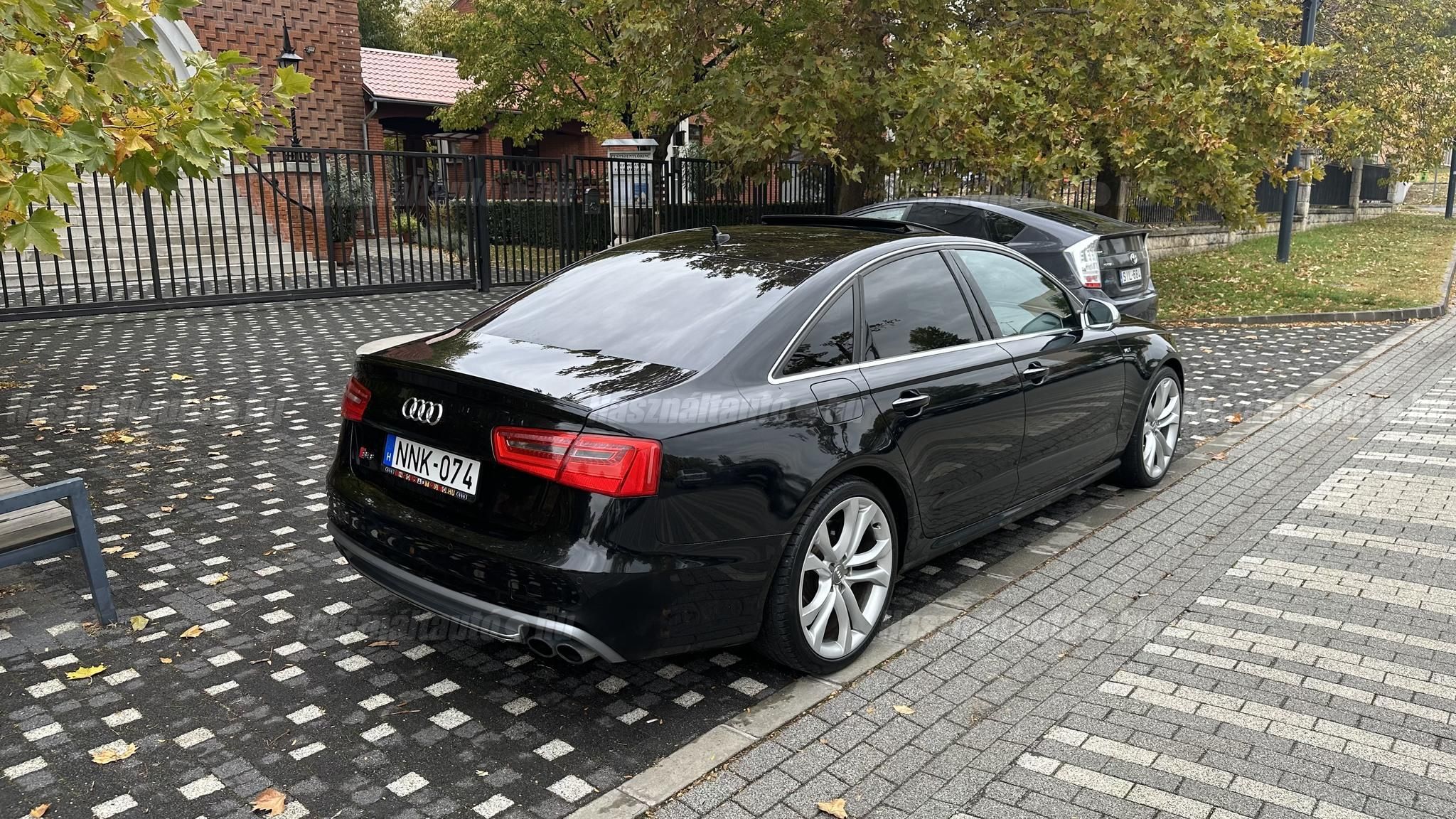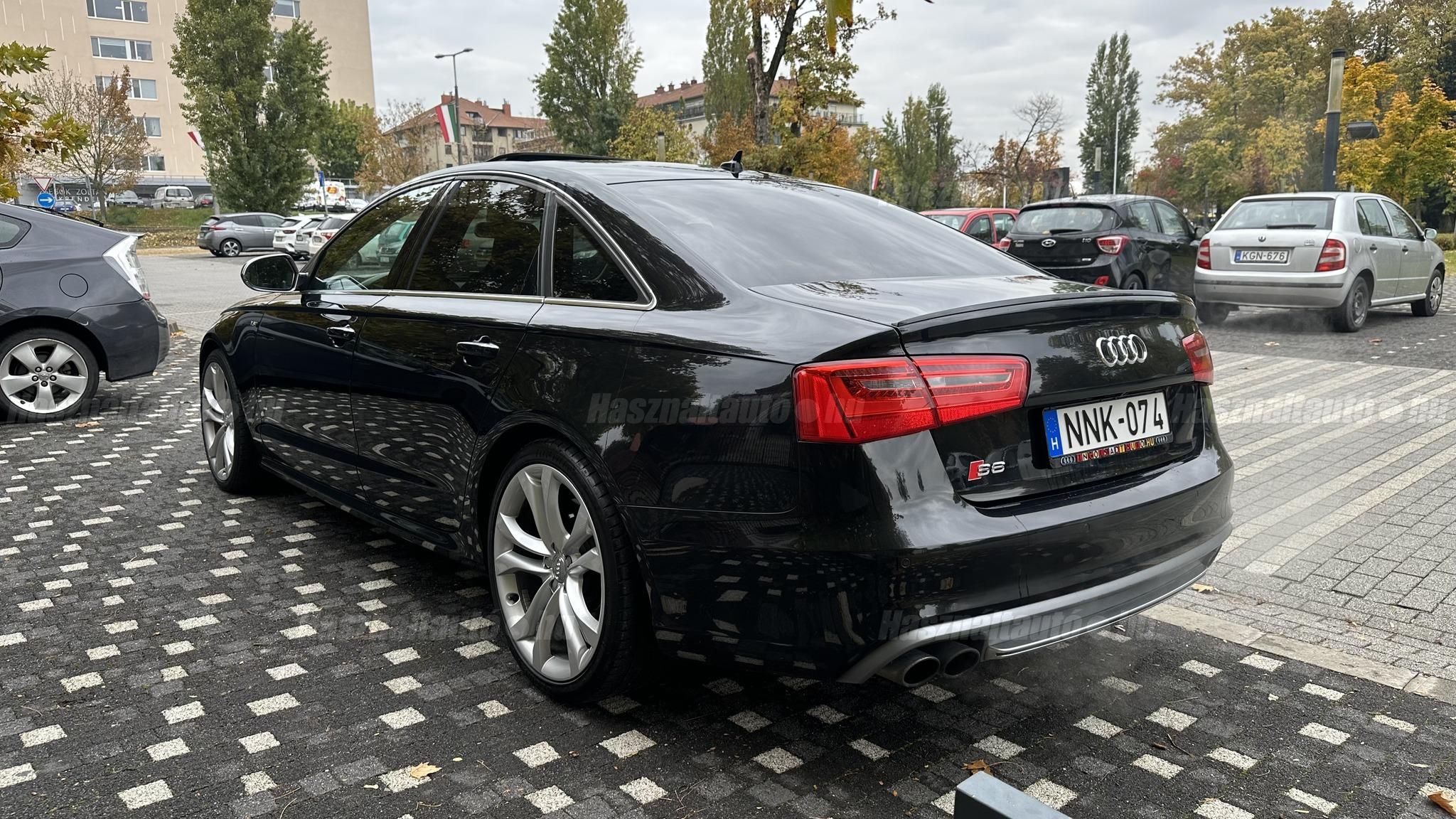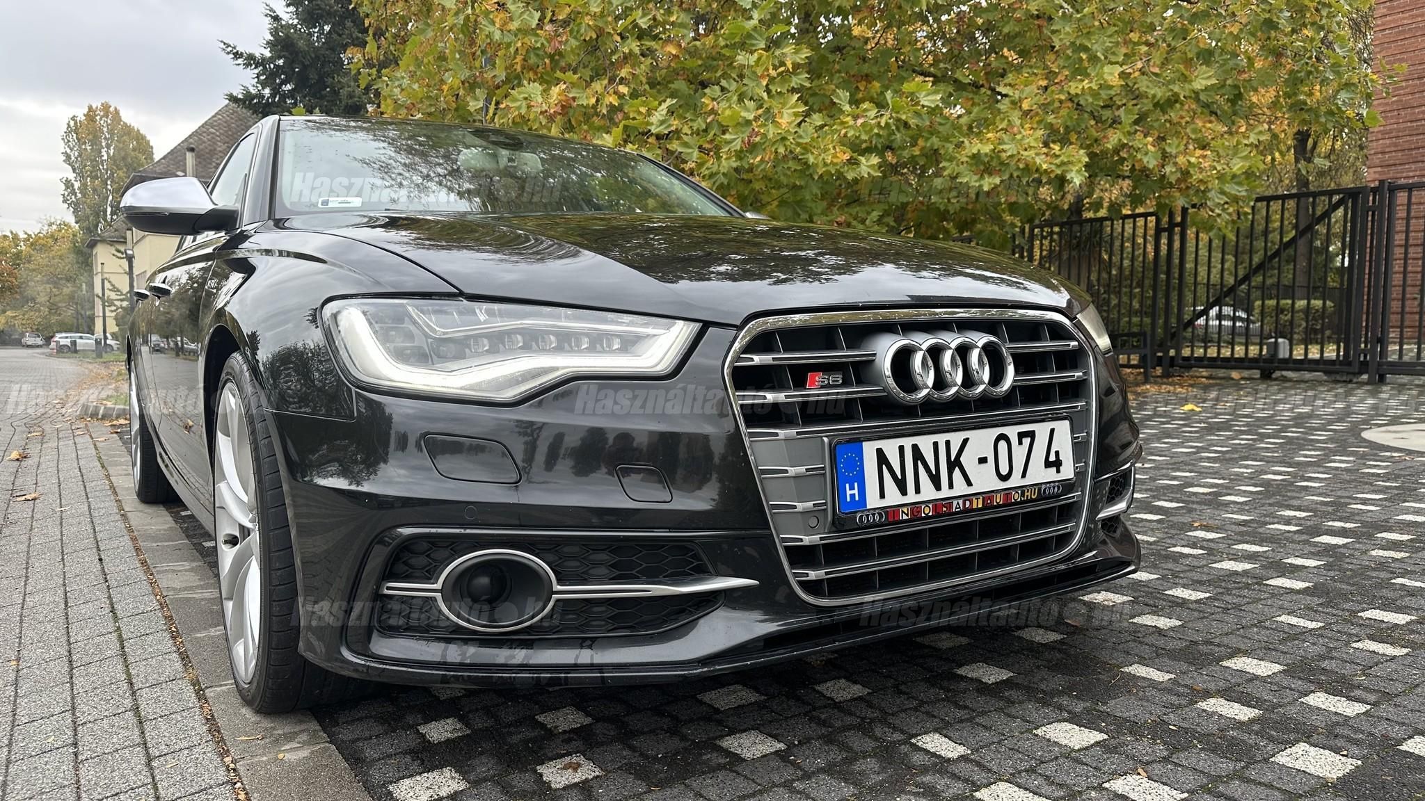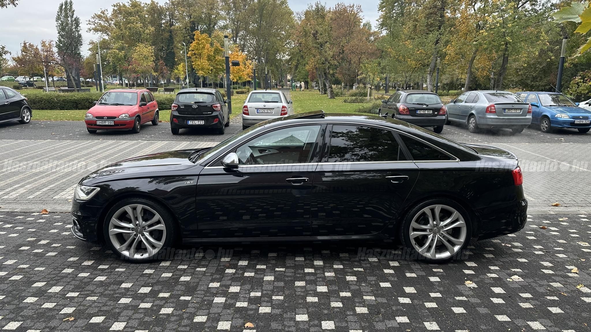 További 50 nagy felbontású kép: facebook/ingolstadtauto oldalunkon! AZ AUTÓK MEGTEKINTÉSÉHEZ MINDEN ESETBEN ELŐZETES TELEFONOS EGYEZTETÉS SZÜKSÉGES! BANKI HITELÜGYINTÉZÉSben is tudunk segíteni ez 12-84 hónapig terjedő periódusra ütemezhető. Legalább 20% önrésszel vehető fel.----------TÍPUS / ÁLLAPOT----------A TÍPUSRÓL: Az S6 4G Sedan kivitele, ráncfelvarrás előtti utolsó kiadások egyike, 2014-es modell. A motor specifikációit tekintve egy 4 literes, két turbós V8-as benzinmotor áll a rendelkezésünkre, ami igencsak meggyőző értékekkel bír: 420 lóerőt és 550 Nm-t tudunk mozgósítani, amivel ez a majdnem kéttonnás luxuslimuzin 4,8 másodperc alatt futja a 100 km/h-t. A jól ismert quattro összkerékhajtásnak köszönhetően nagyon jól és biztonságosan autózható. Ez a modell a 7 sebességes S tronic váltót kapta. Talán az összes 4G fényszóró közül ez a full LED lámpa mutat a legjobban szerencsére ebben az autóban pont ez van.AZ ADOTT AUTÓRÓL: Az autó fényezése szép és homogén. A jobb oldalán történt korábban javítás, a jobb hátsó sárvédőn és a jobb hátsó ajtón volt egy kisebb beavatkozás a festékmérés alapján, ezenkívül még a motorháztető lett fényezve valószínűleg kavicsfelverődés miatt , a többi elemen gyári értékek mérhetőek. A munka szakszerűen és igényesen készült, szabad szemmel semmi nem utal korábbi sérülésre. A felnik állapota szép, egyedül egy felnin van egy minimális sérülés. Az autón nyári gumik vannak jelenleg.A beltér tiszta, szakadás- és kopásmentes. Az autóhoz tartozik a szervizkönyv, valamint minden dokumentum, amely igazolja a futott kilométert. Minden gyári tartozék, dokumentáció, két eredeti kulcs és az állófűtés távirányítója is megvan.Szerkezetileg, motorikusan és a váltó működését tekintve is hibátlan állapotú, minden extra tökéletesen működik.----------EXTRÁK----------Sportkagylóülések fehér bőr / AlcantaraPerforált bőrözés a kormányonElektromosan állítható első ülésekVezetőoldali ülésmemóriaNyitható / buktatható napfénytetőGyári Audi 19 colos alufelniElöl-hátul ülésfűtésStart/Stop rendszerBehajtható külső tükrökKomfort bejutás4 zónás digitális klímaFull LED soros fényszórókAudi Drive Select menetdinamikai szabályozórendszer (4 alap + 1 programozható karakterisztika: váltó / motor, gázreakció, kormányzás, rugózás)LED nappali menetfényAdaptív lengéscsillapításHővédő üvegezésKulcsnélküli indításFékasszisztensEső- és fényszenzorTempomatHead-up kijelzőTávolságtartó tempomat (ACC)Automatikusan sötétedő belső tükörFűthető szélvédőmosó-fúvókákISOFIX gyermekülés-rögzítési pontokASR kipörgésgátlóVisszagurulás-gátlóKihúzható combtámaszFehér Alcantara ajtóbetétekMultikormányHangvezérlésAutomatikus fényszórókapcsolásFém betétes pedálokIndulássegítő (Hold Assist)Távolsági fényasszisztensTolatóradarElektromos csomagtérajtóBose hifi rendszerTolatókamera hátulElektromos hátsó rolóAUTÓINKAT 1-3 ÉVIG TERJEDŐ GARANCIÁVAL IS TUDJUK ÉRTÉKESÍTENI, MEGÁLLAPODÁS SZERINT. Autóbeszámítás vagy bármilyen kérdés esetén a lenti telefonszámon keressen vagy WhatsApp-on, Viberen is elérhetőek vagyunk (email-t ne írjon!). TOVÁBBI KÜLÖNLEGES AUDIKÉRT KÖVESSE KÍNÁLATUNKAT FACEBOOKON: INGOLSTADTAUTO |