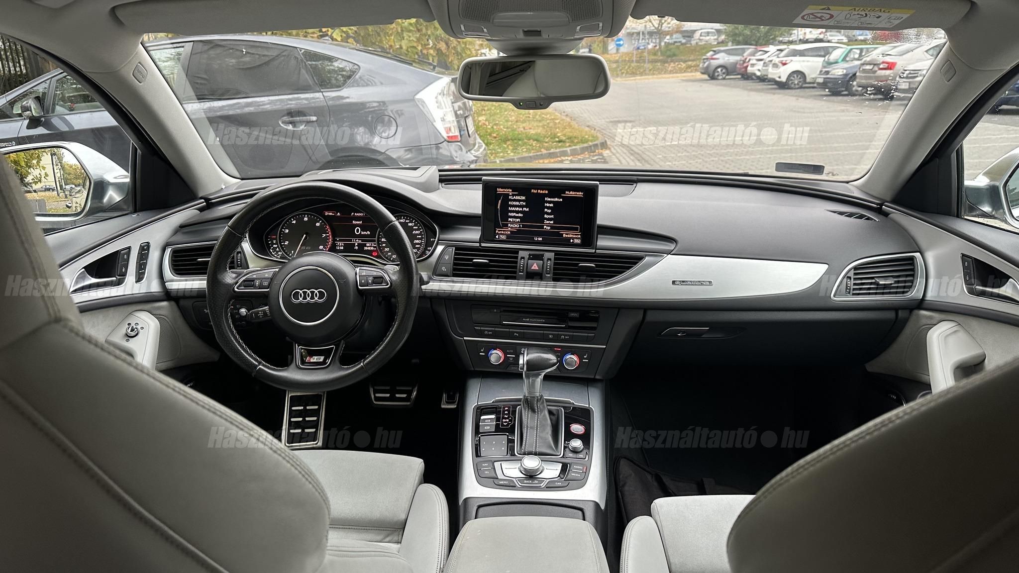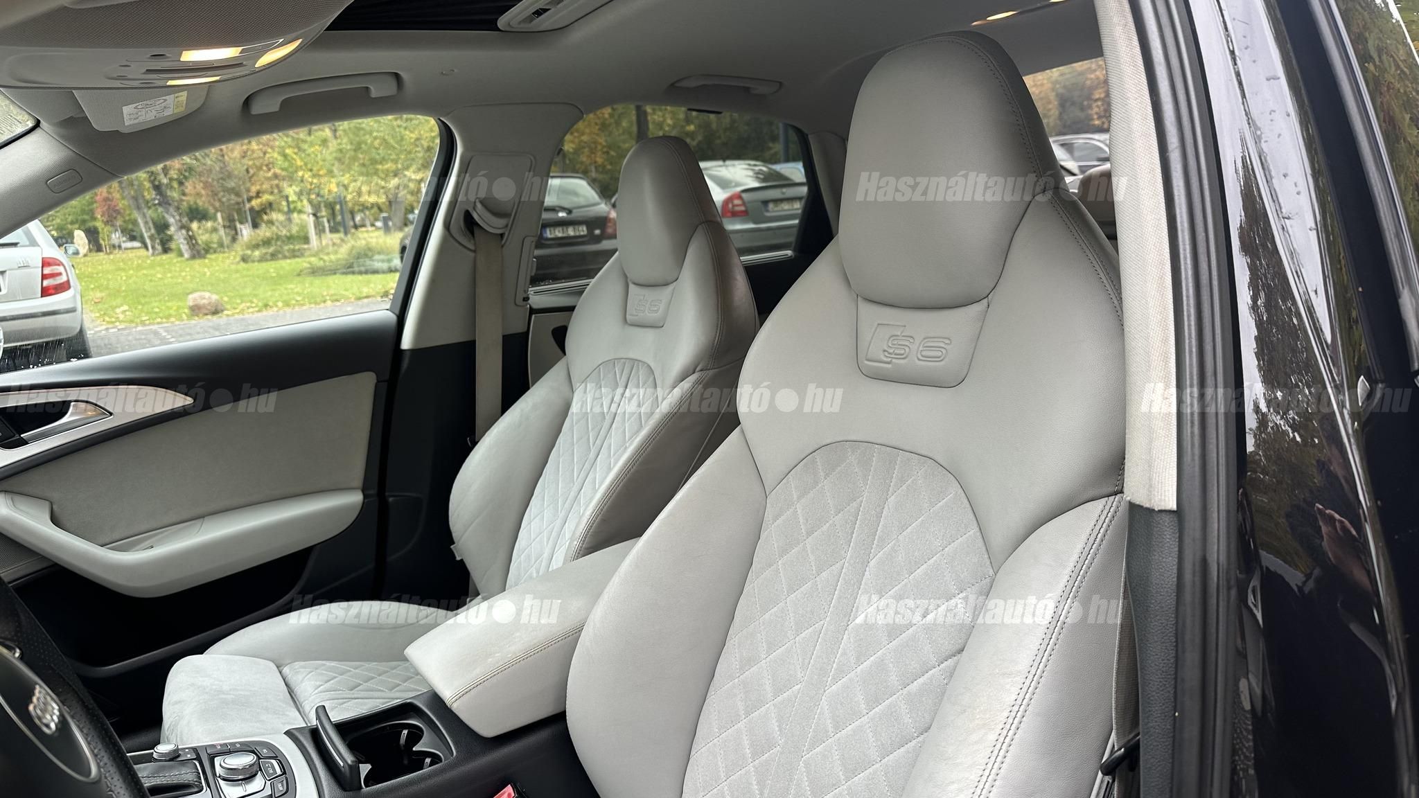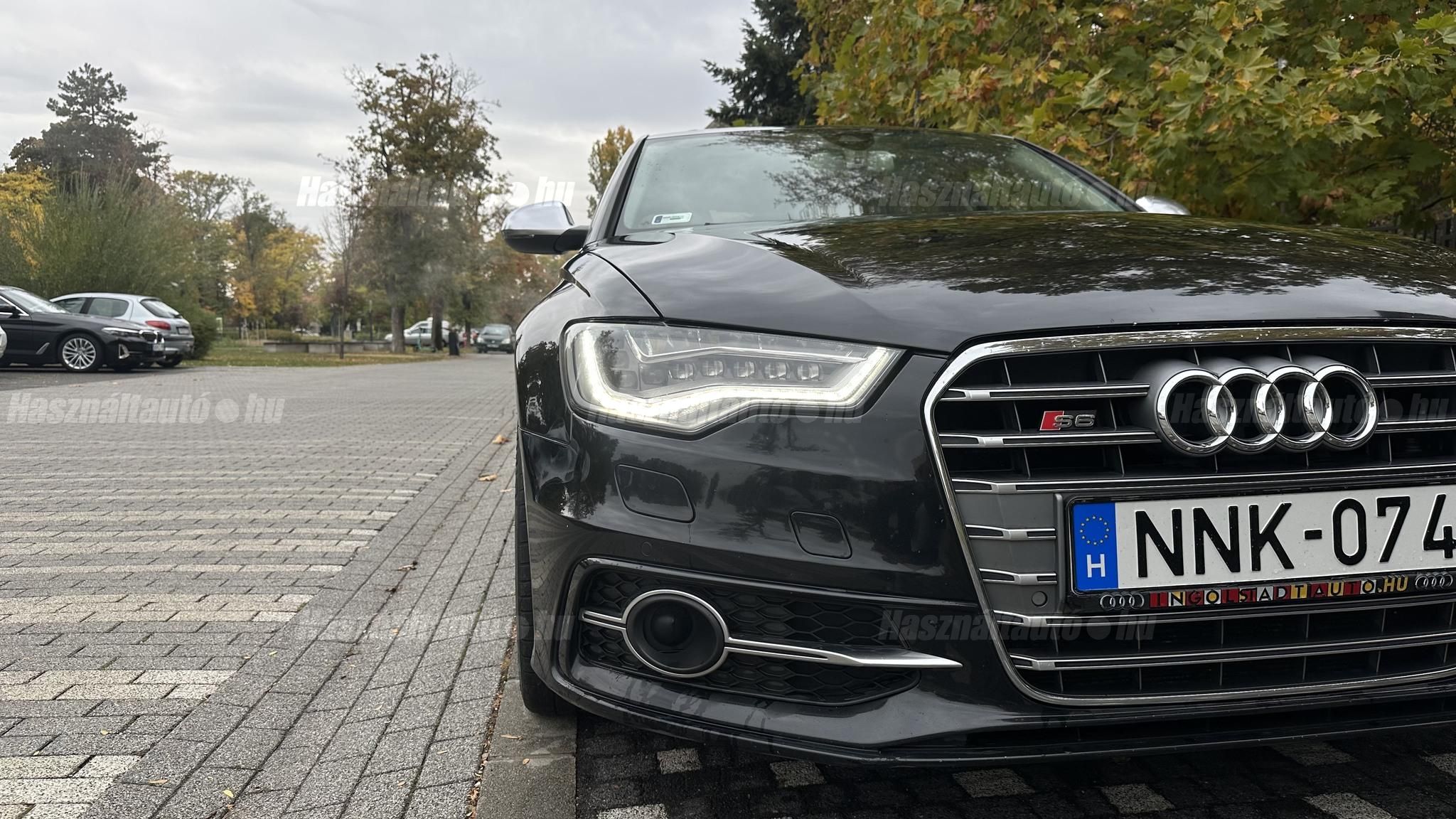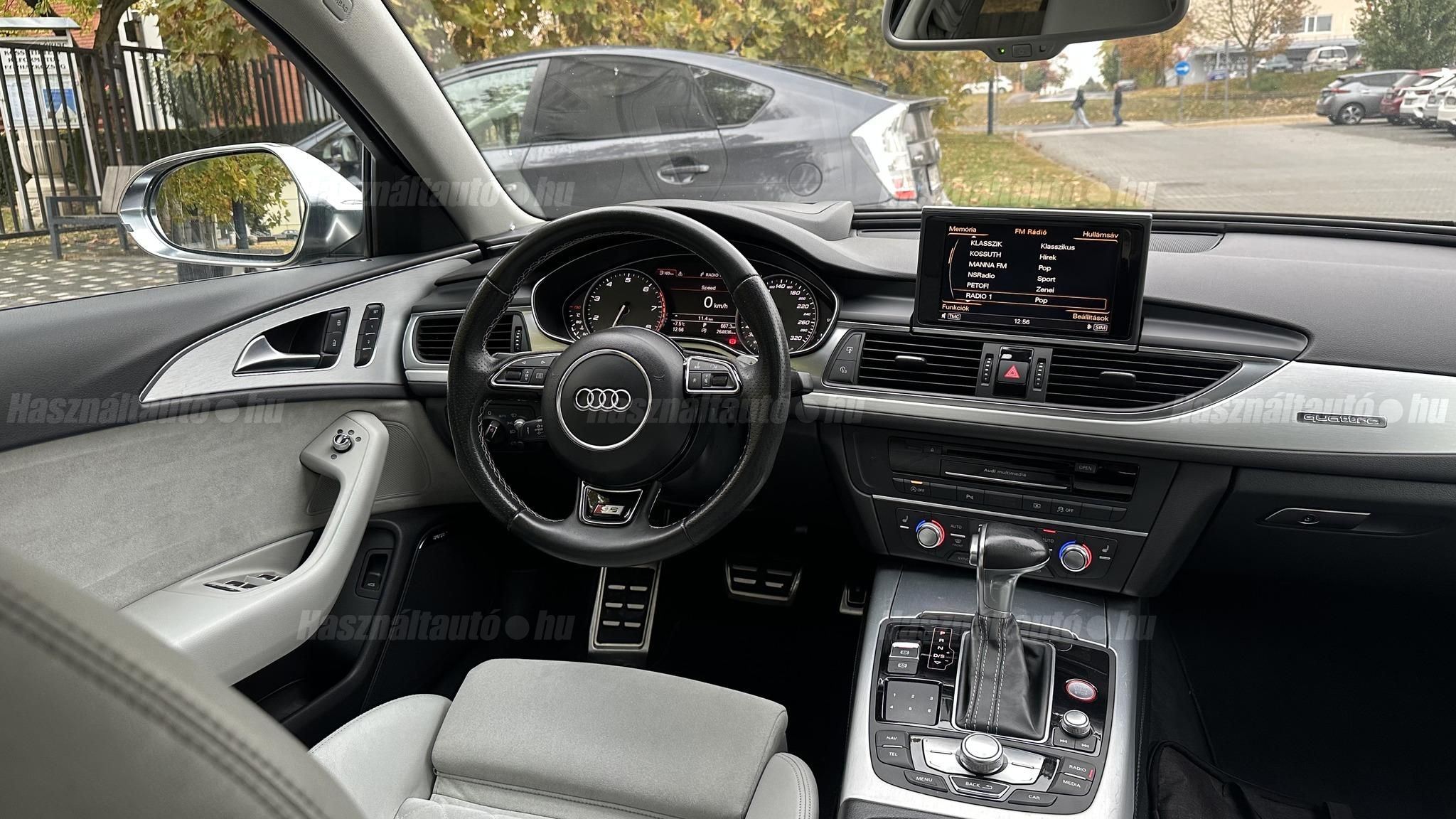 További 50 nagy felbontású kép: facebook/ingolstadtauto oldalunkon! AZ AUTÓK MEGTEKINTÉSÉHEZ MINDEN ESETBEN ELŐZETES TELEFONOS EGYEZTETÉS SZÜKSÉGES! BANKI HITELÜGYINTÉZÉSben is tudunk segíteni ez 12-84 hónapig terjedő periódusra ütemezhető. Legalább 20% önrésszel vehető fel.----------TÍPUS / ÁLLAPOT----------A TÍPUSRÓL: Az S6 4G Sedan kivitele, ráncfelvarrás előtti utolsó kiadások egyike, 2014-es modell. A motor specifikációit tekintve egy 4 literes, két turbós V8-as benzinmotor áll a rendelkezésünkre, ami igencsak meggyőző értékekkel bír: 420 lóerőt és 550 Nm-t tudunk mozgósítani, amivel ez a majdnem kéttonnás luxuslimuzin 4,8 másodperc alatt futja a 100 km/h-t. A jól ismert quattro összkerékhajtásnak köszönhetően nagyon jól és biztonságosan autózható. Ez a modell a 7 sebességes S tronic váltót kapta. Talán az összes 4G fényszóró közül ez a full LED lámpa mutat a legjobban szerencsére ebben az autóban pont ez van.AZ ADOTT AUTÓRÓL: Az autó fényezése szép és homogén. A jobb oldalán történt korábban javítás, a jobb hátsó sárvédőn és a jobb hátsó ajtón volt egy kisebb beavatkozás a festékmérés alapján, ezenkívül még a motorháztető lett fényezve valószínűleg kavicsfelverődés miatt , a többi elemen gyári értékek mérhetőek. A munka szakszerűen és igényesen készült, szabad szemmel semmi nem utal korábbi sérülésre. A felnik állapota szép, egyedül egy felnin van egy minimális sérülés. Az autón nyári gumik vannak jelenleg.A beltér tiszta, szakadás- és kopásmentes. Az autóhoz tartozik a szervizkönyv, valamint minden dokumentum, amely igazolja a futott kilométert. Minden gyári tartozék, dokumentáció, két eredeti kulcs és az állófűtés távirányítója is megvan.Szerkezetileg, motorikusan és a váltó működését tekintve is hibátlan állapotú, minden extra tökéletesen működik.----------EXTRÁK----------Sportkagylóülések fehér bőr / AlcantaraPerforált bőrözés a kormányonElektromosan állítható első ülésekVezetőoldali ülésmemóriaNyitható / buktatható napfénytetőGyári Audi 19 colos alufelniElöl-hátul ülésfűtésStart/Stop rendszerBehajtható külső tükrökKomfort bejutás4 zónás digitális klímaFull LED soros fényszórókAudi Drive Select menetdinamikai szabályozórendszer (4 alap + 1 programozható karakterisztika: váltó / motor, gázreakció, kormányzás, rugózás)LED nappali menetfényAdaptív lengéscsillapításHővédő üvegezésKulcsnélküli indításFékasszisztensEső- és fényszenzorTempomatHead-up kijelzőTávolságtartó tempomat (ACC)Automatikusan sötétedő belső tükörFűthető szélvédőmosó-fúvókákISOFIX gyermekülés-rögzítési pontokASR kipörgésgátlóVisszagurulás-gátlóKihúzható combtámaszFehér Alcantara ajtóbetétekMultikormányHangvezérlésAutomatikus fényszórókapcsolásFém betétes pedálokIndulássegítő (Hold Assist)Távolsági fényasszisztensTolatóradarElektromos csomagtérajtóBose hifi rendszerTolatókamera hátulElektromos hátsó rolóAUTÓINKAT 1-3 ÉVIG TERJEDŐ GARANCIÁVAL IS TUDJUK ÉRTÉKESÍTENI, MEGÁLLAPODÁS SZERINT. Autóbeszámítás vagy bármilyen kérdés esetén a lenti telefonszámon keressen vagy WhatsApp-on, Viberen is elérhetőek vagyunk (email-t ne írjon!). TOVÁBBI KÜLÖNLEGES AUDIKÉRT KÖVESSE KÍNÁLATUNKAT FACEBOOKON: INGOLSTADTAUTO |