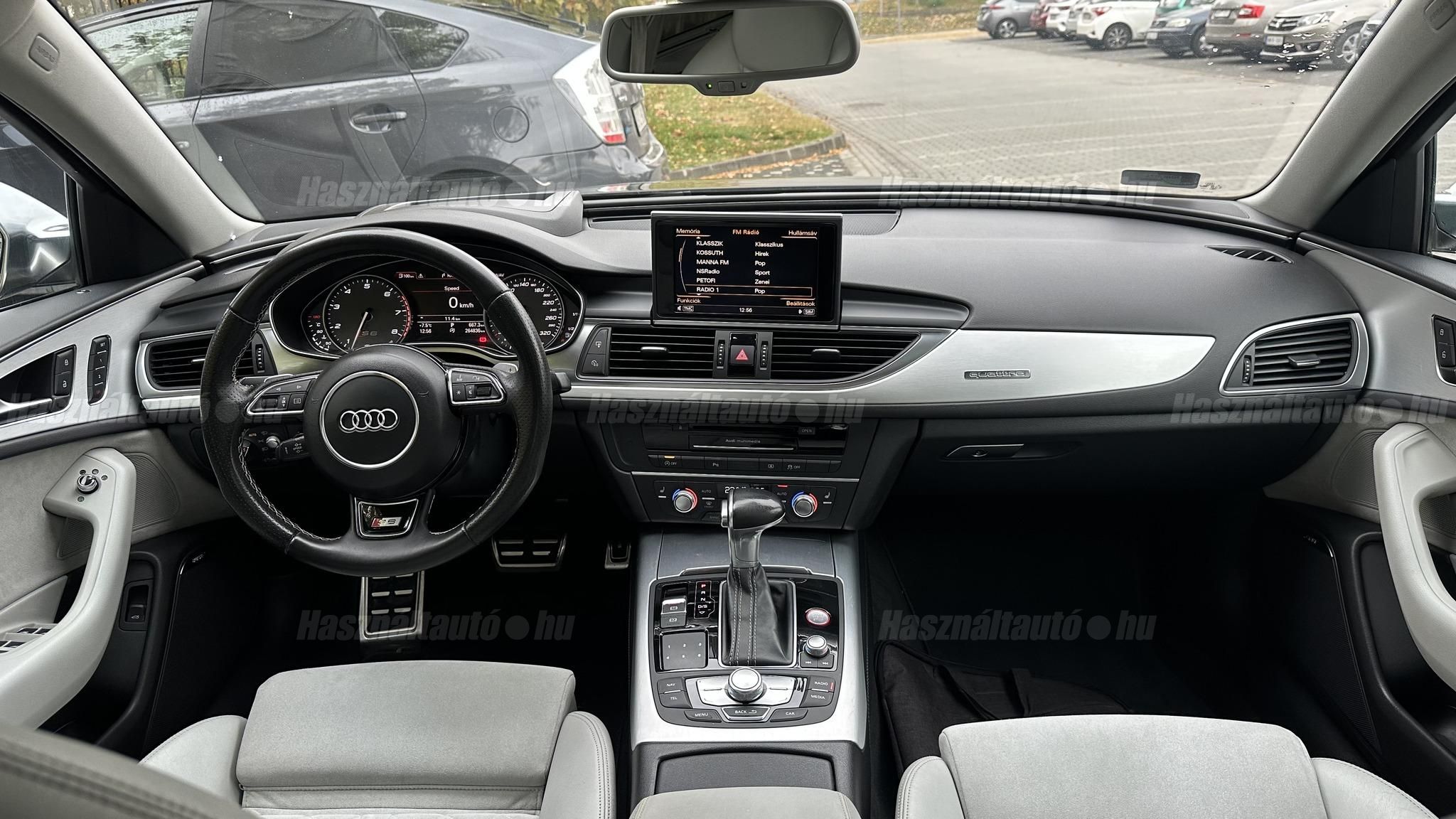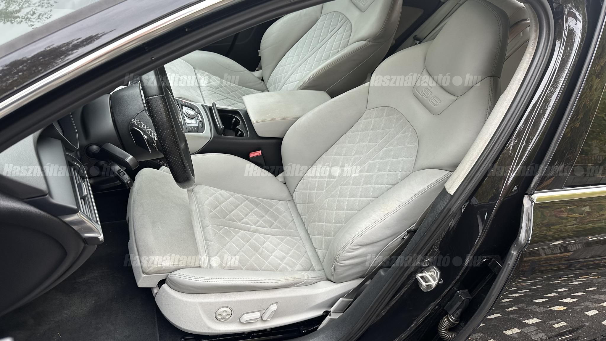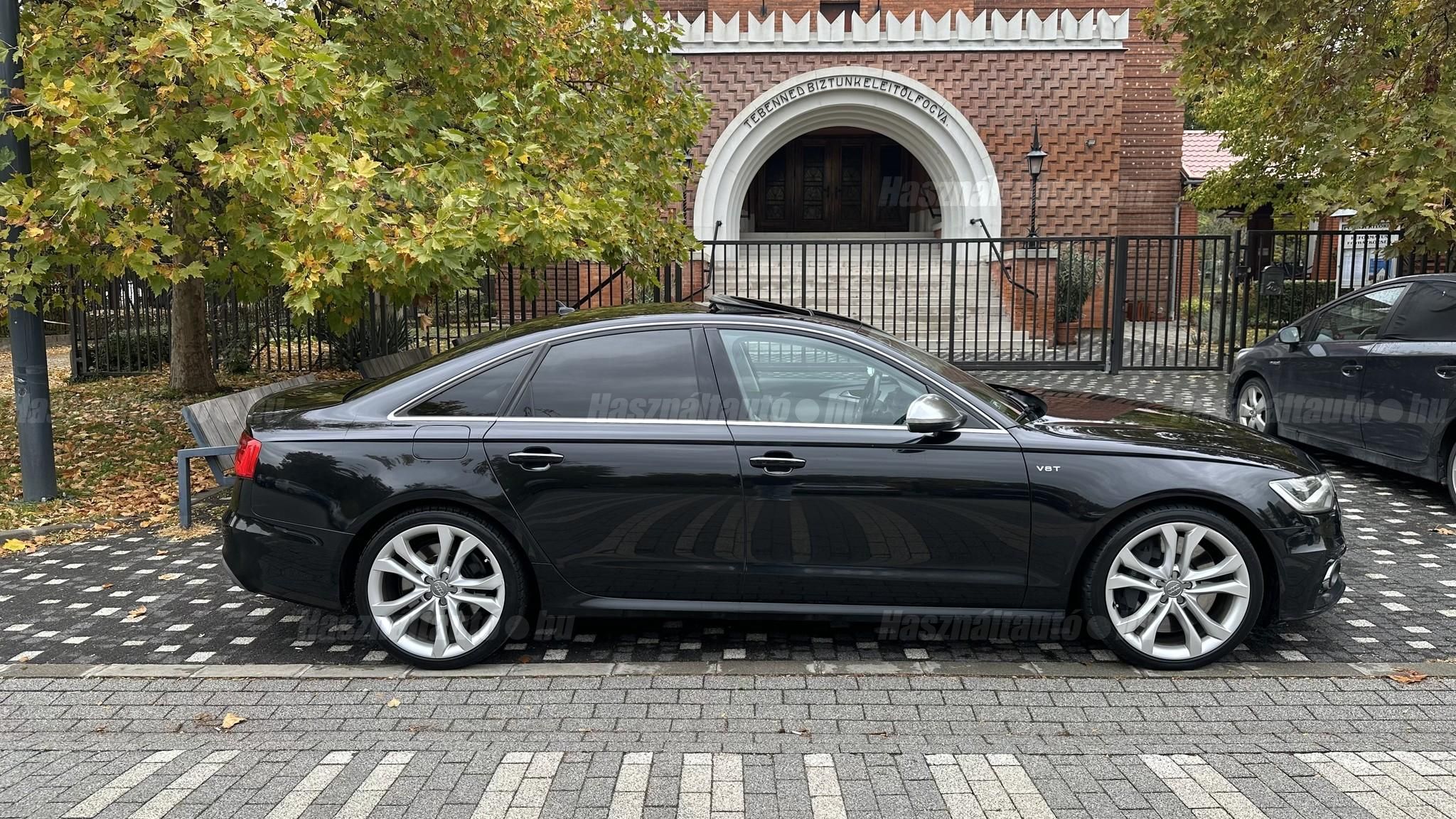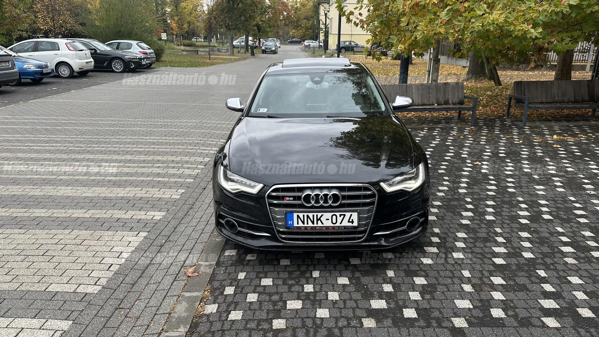 További 50 nagy felbontású kép: facebook/ingolstadtauto oldalunkon! AZ AUTÓK MEGTEKINTÉSÉHEZ MINDEN ESETBEN ELŐZETES TELEFONOS EGYEZTETÉS SZÜKSÉGES! BANKI HITELÜGYINTÉZÉSben is tudunk segíteni ez 12-84 hónapig terjedő periódusra ütemezhető. Legalább 20% önrésszel vehető fel.----------TÍPUS / ÁLLAPOT----------A TÍPUSRÓL: Az S6 4G Sedan kivitele, ráncfelvarrás előtti utolsó kiadások egyike, 2014-es modell. A motor specifikációit tekintve egy 4 literes, két turbós V8-as benzinmotor áll a rendelkezésünkre, ami igencsak meggyőző értékekkel bír: 420 lóerőt és 550 Nm-t tudunk mozgósítani, amivel ez a majdnem kéttonnás luxuslimuzin 4,8 másodperc alatt futja a 100 km/h-t. A jól ismert quattro összkerékhajtásnak köszönhetően nagyon jól és biztonságosan autózható. Ez a modell a 7 sebességes S tronic váltót kapta. Talán az összes 4G fényszóró közül ez a full LED lámpa mutat a legjobban szerencsére ebben az autóban pont ez van.AZ ADOTT AUTÓRÓL: Az autó fényezése szép és homogén. A jobb oldalán történt korábban javítás, a jobb hátsó sárvédőn és a jobb hátsó ajtón volt egy kisebb beavatkozás a festékmérés alapján, ezenkívül még a motorháztető lett fényezve valószínűleg kavicsfelverődés miatt , a többi elemen gyári értékek mérhetőek. A munka szakszerűen és igényesen készült, szabad szemmel semmi nem utal korábbi sérülésre. A felnik állapota szép, egyedül egy felnin van egy minimális sérülés. Az autón nyári gumik vannak jelenleg.A beltér tiszta, szakadás- és kopásmentes. Az autóhoz tartozik a szervizkönyv, valamint minden dokumentum, amely igazolja a futott kilométert. Minden gyári tartozék, dokumentáció, két eredeti kulcs és az állófűtés távirányítója is megvan.Szerkezetileg, motorikusan és a váltó működését tekintve is hibátlan állapotú, minden extra tökéletesen működik.----------EXTRÁK----------Sportkagylóülések fehér bőr / AlcantaraPerforált bőrözés a kormányonElektromosan állítható első ülésekVezetőoldali ülésmemóriaNyitható / buktatható napfénytetőGyári Audi 19 colos alufelniElöl-hátul ülésfűtésStart/Stop rendszerBehajtható külső tükrökKomfort bejutás4 zónás digitális klímaFull LED soros fényszórókAudi Drive Select menetdinamikai szabályozórendszer (4 alap + 1 programozható karakterisztika: váltó / motor, gázreakció, kormányzás, rugózás)LED nappali menetfényAdaptív lengéscsillapításHővédő üvegezésKulcsnélküli indításFékasszisztensEső- és fényszenzorTempomatHead-up kijelzőTávolságtartó tempomat (ACC)Automatikusan sötétedő belső tükörFűthető szélvédőmosó-fúvókákISOFIX gyermekülés-rögzítési pontokASR kipörgésgátlóVisszagurulás-gátlóKihúzható combtámaszFehér Alcantara ajtóbetétekMultikormányHangvezérlésAutomatikus fényszórókapcsolásFém betétes pedálokIndulássegítő (Hold Assist)Távolsági fényasszisztensTolatóradarElektromos csomagtérajtóBose hifi rendszerTolatókamera hátulElektromos hátsó rolóAUTÓINKAT 1-3 ÉVIG TERJEDŐ GARANCIÁVAL IS TUDJUK ÉRTÉKESÍTENI, MEGÁLLAPODÁS SZERINT. Autóbeszámítás vagy bármilyen kérdés esetén a lenti telefonszámon keressen vagy WhatsApp-on, Viberen is elérhetőek vagyunk (email-t ne írjon!). TOVÁBBI KÜLÖNLEGES AUDIKÉRT KÖVESSE KÍNÁLATUNKAT FACEBOOKON: INGOLSTADTAUTO |
