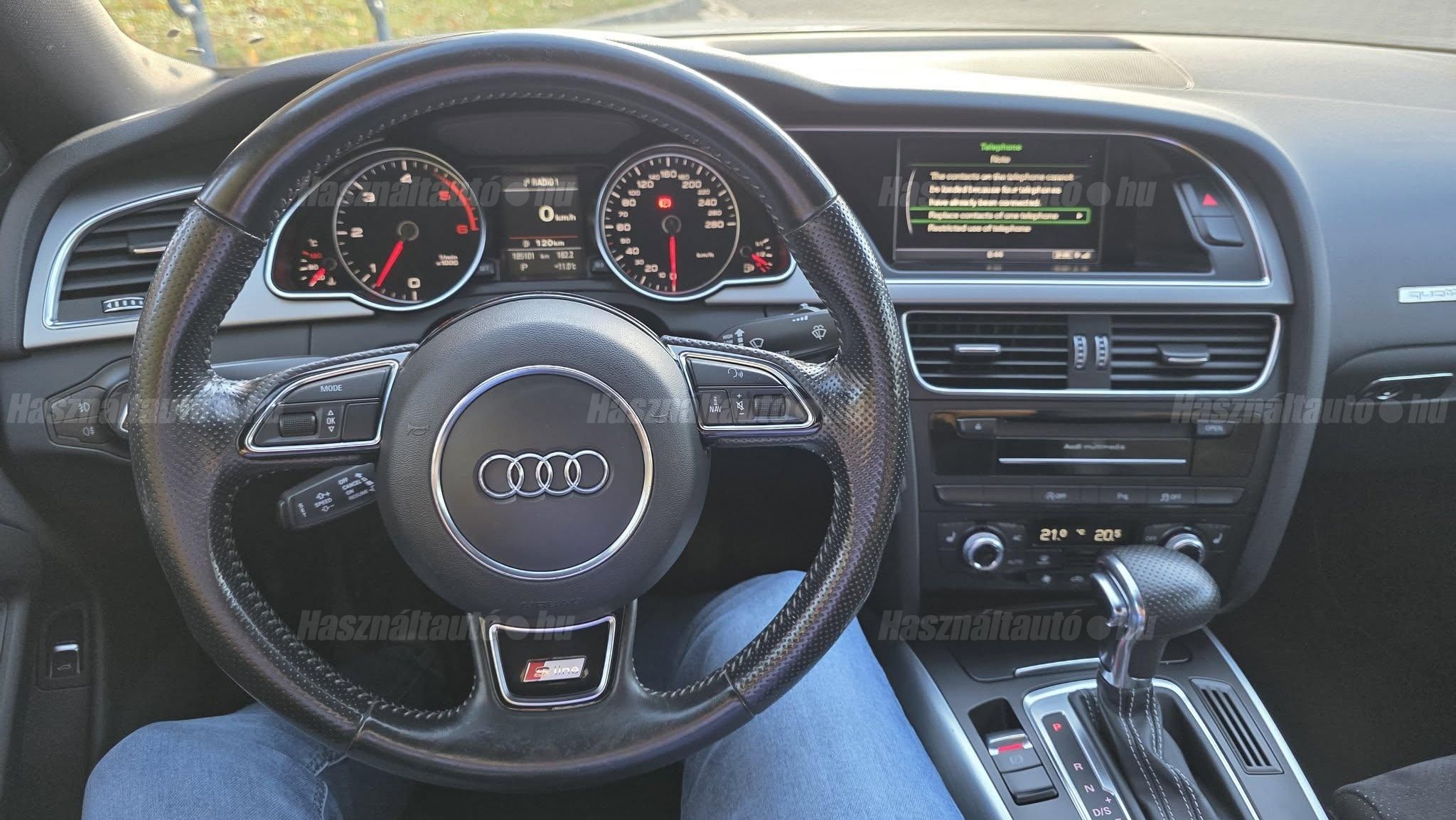 További 80 nagy felbontású kép: facebook/ingolstadtauto oldalunkon! AZ AUTÓK MEGTEKINTÉSÉHEZ MINDEN ESETBEN ELŐZETES TELEFONOS EGYEZTETÉS SZÜKSÉGES! ---------- RÉSZLET FIZETÉSSEL IS ELVIHETŐ: Nincs hitelbírálat, nem gond a BAR lista, nem kérünk jövedelemigazolást sem. Kezdő részlet: 3.5 millió Ft További részletek: 12 x 281.000Ft -havi részletekben egy éven át. NEM tartalmazza a kötelező biztosítás és a CASCO költségét, melyek feltételei a szerződés megkötésének. Magasabb kezdő részlet befizetése esetén a további havi részletek alcsonyabbak lehetnek. Alacsonyabb kezdő részlet befizetésére nincs lehetőség! További feltételekért és információkért keressen minket személyesen vagy telefonon. BANKI HITELÜGYINTÉZÉSben is tudunk segíteni ez 12-84 hónapig terjedő periódusra ütemezhető. Legalább 20% önrésszel vehető fel.----------TÍPUS/ÁLLAPOT----------A TÍPUSRÓL: Az erősebb 3 literes dízel motorral készült típus 245 LE. Ez a kiadás kizárólag Quattro hajtással készült. Kedvező fogyasztás mellett nagyon dinamikus teljesítményt nyújt. 7 fokozatú S tronic automata váltóval rendelték, mellyel még kényelmesebb lett az autó összhatásában.AZ ADOTT AUTÓRÓL: Az autó fényezésén 2 db hiba van, ezekről csináltunk képet, és videóban is mutatom. Ezek kijavítása benne van az árban. A vezérműláncot nem rázza, még nem kell cserélni a vezérlést. A váltó szépen vált minden fokozat között, hidegen és melegen egyaránt. Gumik, fékek és egyéb kopó alkatrészek állapota rendben van, perpillanat semmit nem kell cserélni.A beltér szép, szakadás- és kopásmentes. Az autóhoz tartozik a szervizkönyv, valamint CarVertical-os riportot is kértünk le, amit ingyenesen továbbküldünk igény esetén. Minden gyári tartozék, dokumentáció, két eredeti kulcs és az állófűtés távirányítója is megvan. A szervizkönyv vezetett. Minden extra tökéletesen működik.----------EXTRÁK----------3x-SlineIBIS fehér fényezésFekete bőr és alcantara kárpitozásS line combtámaszos ülésekKüszöbök S line jelölésselPerforált bőrözés a kormányon és a váltógombokonElektromosan állítható első ülésekNyitható/buktatható napfénytetőGyári Audi 19 colos alufelni ROTORElső ülésfűtésStart/Stop rendszerBehajtható külső tükrökKomfort bejutásCsapott aljú sportkormányFekete S line tetőkárpit2 zónás digitális klímaAudi Drive Select menetdinamikai szabályozórendszer (4 alap + 1 programozható karakterisztika: váltó/motor, gázreakció, kormányzás, rugózás)LED nappali menetfényHővédő üvegezésKulcsnélküli indításMMI 3G PlusFékasszisztensEső- és fényszenzorTempomatAutomatikusan sötétedő belső tükörFűthető szélvédőmosó-fúvókákISOFIX gyermekülés-rögzítési pontokASR kipörgésgátlóVisszagurulás-gátlóIndulássegítő (Hold Assist)Távolsági fényasszisztensTolatóradarAUTÓINKAT 1-3 ÉVIG TERJEDŐ GARANCIÁVAL IS TUDJUK ÉRTÉKESÍTENI, MEGÁLLAPODÁS SZERINT. Autóbeszámítás vagy bármilyen kérdés esetén a lenti telefonszámon keressen vagy WhatsApp-on, Viberen is elérhetőek vagyunk (email-t ne írjon!). TOVÁBBI KÜLÖNLEGES AUDIKÉRT KÖVESSE KÍNÁLATUNKAT FACEBOOKON: INGOLSTADTAUTO |