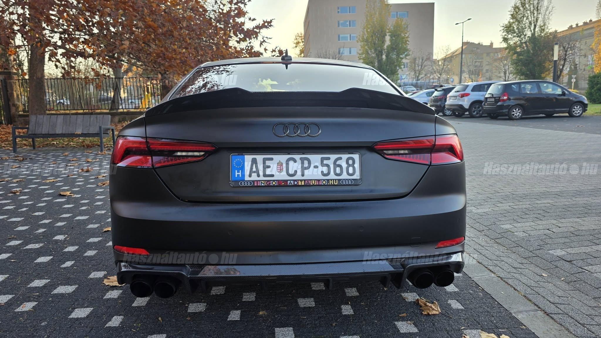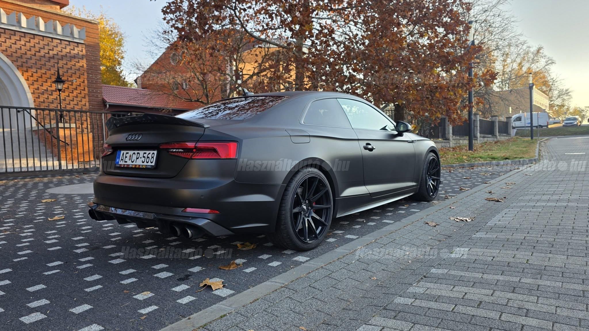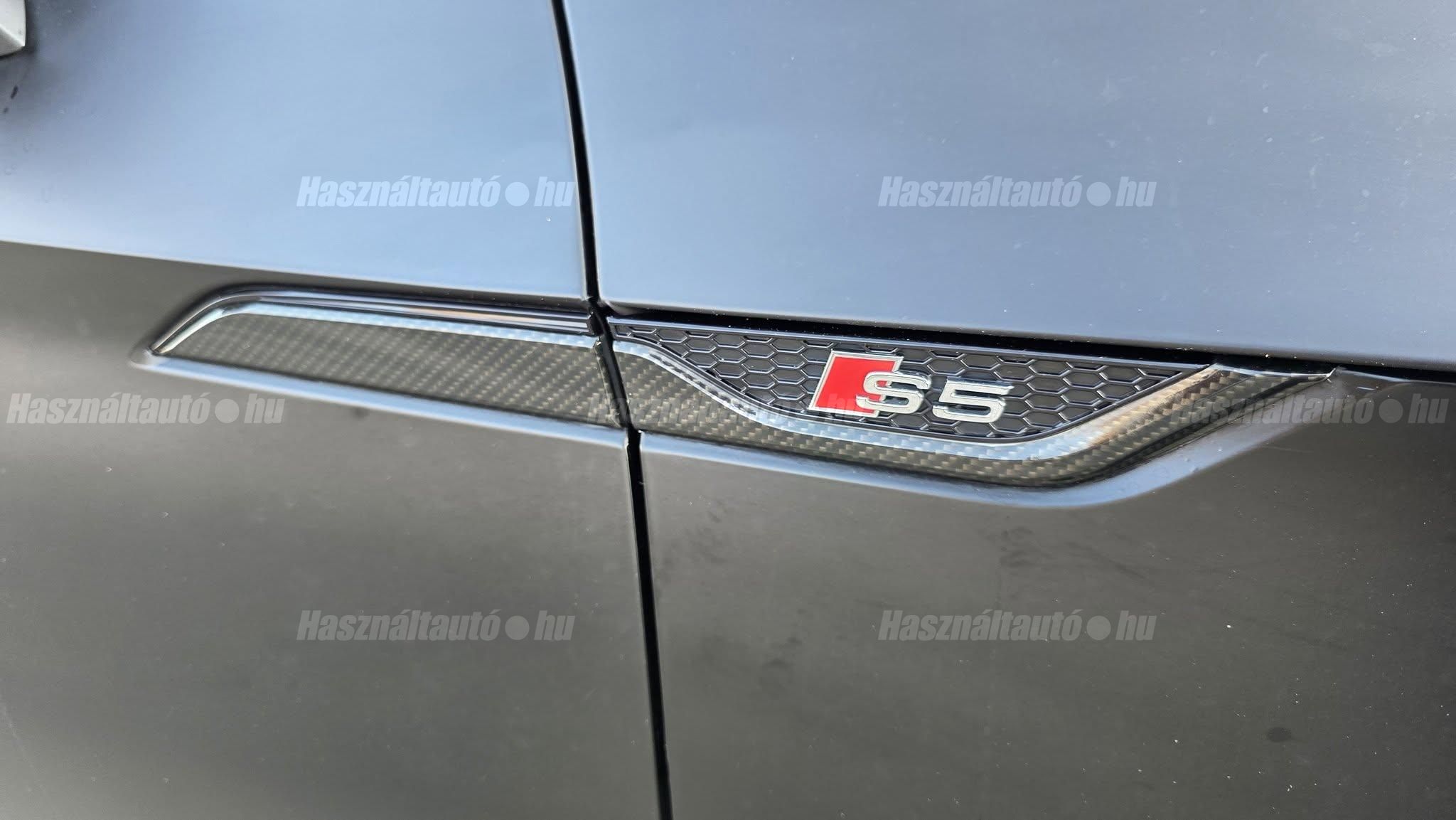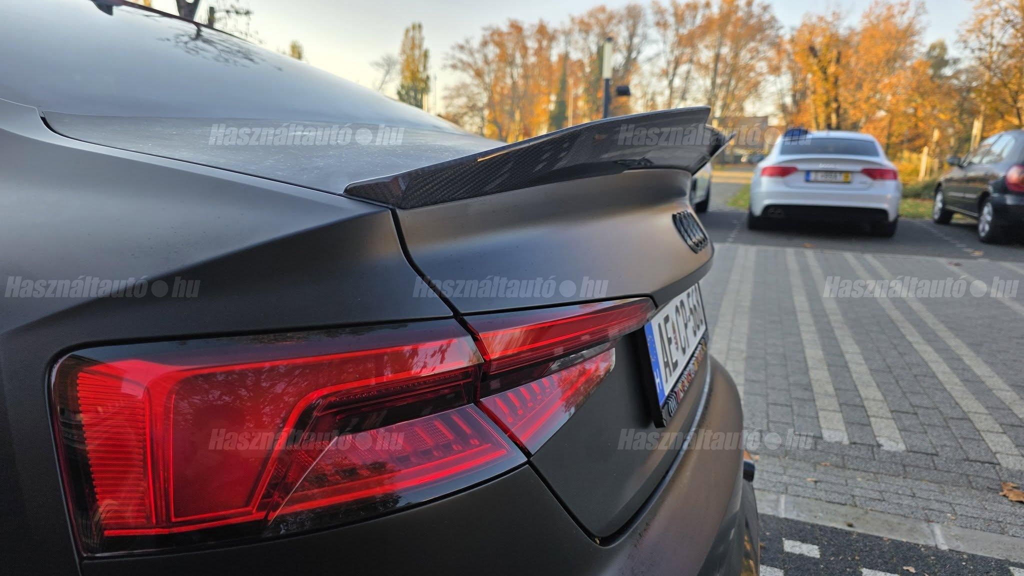 További 50 nagy felbontású kép: facebook/ingolstadtauto oldalunkon! AZ AUTÓK MEGTEKINTÉSÉHEZ MINDEN ESETBEN ELŐZETES TELEFONOS EGYEZTETÉS SZÜKSÉGES! BANKI HITELÜGYINTÉZÉSben is tudunk segíteni ez 12-84 hónapig terjedő periódusra ütemezhető. Legalább 20% önrésszel vehető fel.---------- TÍPUS / ÁLLAPOT ----------A TÍPUSRÓL: 3 literes turbós benzinmotorral és a márka egyik legjobb, 8 fokozatú Tiptronic automata váltójával szerelt modell. Szerintem az egyik legszebb Audi ez az 5-ös széria éles, karakteres vonalakkal, igazi, baltával faragott megjelenéssel. Ízig-vérig Audi.Ezzel a motorváltó kombinációval csak jó tapasztalataim vannak: dinamikus, kellemes hangú, a gyári beállítás is kellően sportos picit durrog is, ahogy kell. Fenntarthatósága jó, a fékek és egyéb alkatrészek ára nagyjából megegyezik egy hasonló méretű (3000 ccm) dízelmodell költségeivel.AZ ADOTT AUTÓRÓL: 2023-ban én pontosabban az INGOLSTADTAUTO importálta az országba ezt az autót. A hűtőrácsot és az első toldatot még mi cseréltük rajta, valamint a JP felnikkel is mi szereltük fel. Egy igen gondos gazdát találtunk neki, aki az elmúlt két évben rendszeresen szervizelte, és folyamatosan tovább is tuningolta az autót. Itt főként esztétikai változtatásokat értünk. STAGE1 program van az autón, ezen kívül motortuning-mentes. Nagyon szép állapotú, törésmentes kupé. Az autó hibátlan, költségmentes, végig szervizelt. Minden extra működik, két eredeti kulcsa megvan. Az egész autó tökéletes állapotban van.TUNING:-Az autó teljes fóliázást kapott antracit matt színben, prémium olasz fóliával.-STAGE1 program, mérési jegyzőkönyvvel és számlával, La-Chip Tuning által készített program-Karbon kilincsburkolat -Karbon Audi embléma garnitúra -Karbon tükörhéjak -Karbon hátsószárny -Karbon fényszoró szemöldök borítás -Karbon első lökhárító toldat -Karbon hátsó diffúzor -RM Karbon és rozsdamentes acél kipufogóvég -Mélynyomó: EM. PHASER-Japan Racing 20 colos felni-Méhsejtrácsos RS hűtőrácsSZERVIZ:Az autó végig a FAUWE Car Kft.-nél volt szervizelve Debrecenben. A két éves időszak alatt 7 db szervizszámla áll rendelkezésre. Ezek többsége olajcsere és kopóalkatrészek cseréje. Egy meghibásodás történt: típushibának számító kartergázcső és olajleválasztó cseréje.A 2023 előtti időszakról az összes audis szervizszámla megvan. Az autó 2023 előtt végig márkaszervizes volt.---------- EXTRÁK ----------Eső- és fényszenzorAudi ConnectMasszázsülések (2x)Ülésfűtésautomata klímaElektromosan állítható vezető és utasülésVilágító alumínium küszöbbetétekS sportkormány (csapott aljú)S sport kagylóülésekBőr kárpitozásS fekete tetőkárpitElektronikusan nyíló csomagtérajtóMultikormány, kormányváltóAudi Drive SelectMagyar nyelvű menü és hangutasításVezeték nélküli telefontöltő a középkonzolonKözépső könyöklőAudi Pre SenseIsofixLED-es úszó irányjelzőkKülső/belső fénycsomagPiros féknyergekFekete nappabőr ülésekStart/Stop rendszerSzínezett hővédő üvegezés (B-oszloptól hátrafelé gyári sötétítéssel)Kulcsnélküli indításTolatóradarSRA (fényszórómosó rendszer)Audi Matrix LED fényszórókVisszagurulás-gátlóBluetooth interfészShine PackFékasszisztensKanyarfény és további időjárási világításokAUTÓINKAT 1-3 ÉVIG TERJEDŐ GARANCIÁVAL IS TUDJUK ÉRTÉKESÍTENI, MEGÁLLAPODÁS SZERINT. Autóbeszámítás vagy bármilyen kérdés esetén a lenti telefonszámon keressen vagy WhatsApp-on, Viberen is elérhetőek vagyunk (email-t ne írjon!). TOVÁBBI KÜLÖNLEGES AUDIKÉRT KÖVESSE KÍNÁLATUNKAT FACEBOOKON: INGOLSTADTAUTO |
