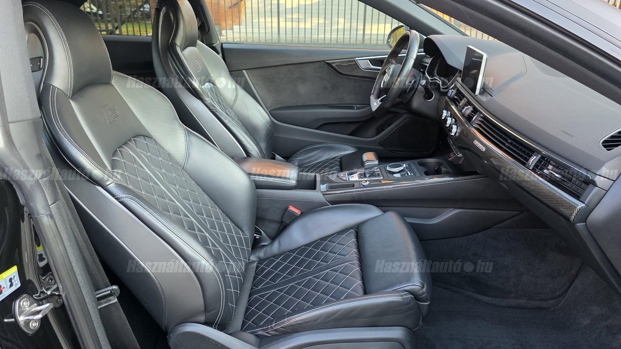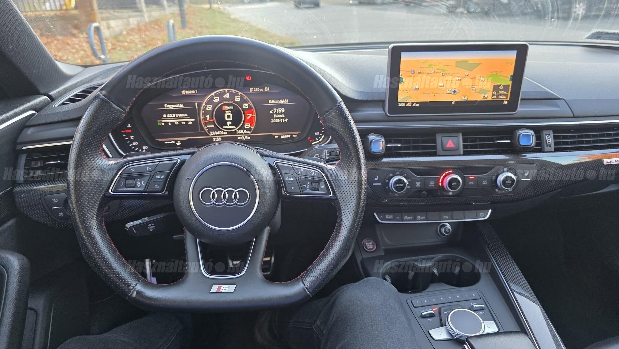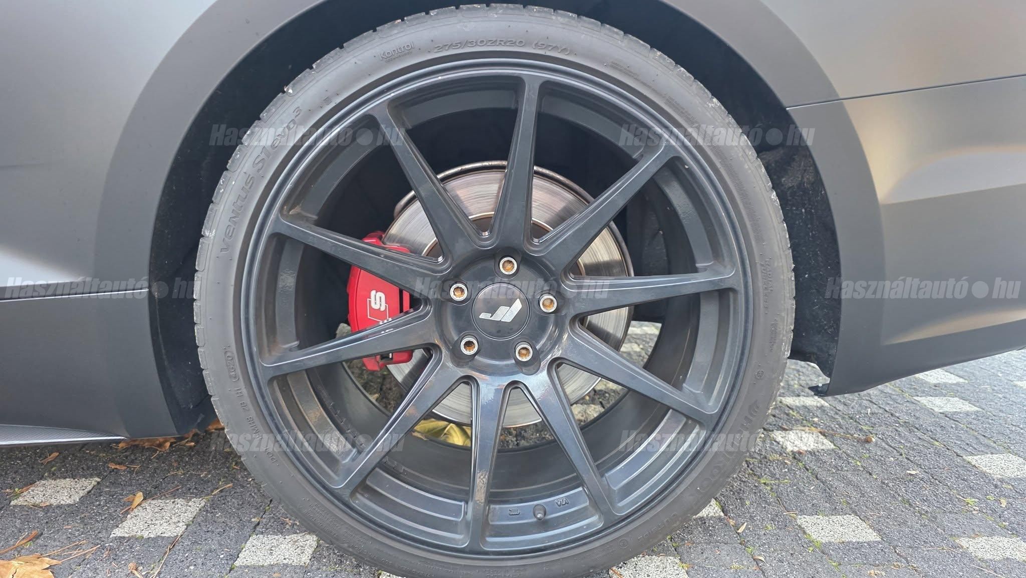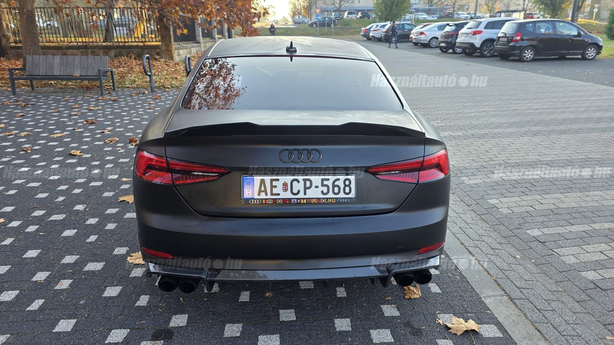 További 50 nagy felbontású kép: facebook/ingolstadtauto oldalunkon! AZ AUTÓK MEGTEKINTÉSÉHEZ MINDEN ESETBEN ELŐZETES TELEFONOS EGYEZTETÉS SZÜKSÉGES! BANKI HITELÜGYINTÉZÉSben is tudunk segíteni ez 12-84 hónapig terjedő periódusra ütemezhető. Legalább 20% önrésszel vehető fel.---------- TÍPUS / ÁLLAPOT ----------A TÍPUSRÓL: 3 literes turbós benzinmotorral és a márka egyik legjobb, 8 fokozatú Tiptronic automata váltójával szerelt modell. Szerintem az egyik legszebb Audi ez az 5-ös széria éles, karakteres vonalakkal, igazi, baltával faragott megjelenéssel. Ízig-vérig Audi.Ezzel a motorváltó kombinációval csak jó tapasztalataim vannak: dinamikus, kellemes hangú, a gyári beállítás is kellően sportos picit durrog is, ahogy kell. Fenntarthatósága jó, a fékek és egyéb alkatrészek ára nagyjából megegyezik egy hasonló méretű (3000 ccm) dízelmodell költségeivel.AZ ADOTT AUTÓRÓL: 2023-ban én pontosabban az INGOLSTADTAUTO importálta az országba ezt az autót. A hűtőrácsot és az első toldatot még mi cseréltük rajta, valamint a JP felnikkel is mi szereltük fel. Egy igen gondos gazdát találtunk neki, aki az elmúlt két évben rendszeresen szervizelte, és folyamatosan tovább is tuningolta az autót. Itt főként esztétikai változtatásokat értünk. STAGE1 program van az autón, ezen kívül motortuning-mentes. Nagyon szép állapotú, törésmentes kupé. Az autó hibátlan, költségmentes, végig szervizelt. Minden extra működik, két eredeti kulcsa megvan. Az egész autó tökéletes állapotban van.TUNING:-Az autó teljes fóliázást kapott antracit matt színben, prémium olasz fóliával.-STAGE1 program, mérési jegyzőkönyvvel és számlával, La-Chip Tuning által készített program-Karbon kilincsburkolat -Karbon Audi embléma garnitúra -Karbon tükörhéjak -Karbon hátsószárny -Karbon fényszoró szemöldök borítás -Karbon első lökhárító toldat -Karbon hátsó diffúzor -RM Karbon és rozsdamentes acél kipufogóvég -Mélynyomó: EM. PHASER-Japan Racing 20 colos felni-Méhsejtrácsos RS hűtőrácsSZERVIZ:Az autó végig a FAUWE Car Kft.-nél volt szervizelve Debrecenben. A két éves időszak alatt 7 db szervizszámla áll rendelkezésre. Ezek többsége olajcsere és kopóalkatrészek cseréje. Egy meghibásodás történt: típushibának számító kartergázcső és olajleválasztó cseréje.A 2023 előtti időszakról az összes audis szervizszámla megvan. Az autó 2023 előtt végig márkaszervizes volt.---------- EXTRÁK ----------Eső- és fényszenzorAudi ConnectMasszázsülések (2x)Ülésfűtésautomata klímaElektromosan állítható vezető és utasülésVilágító alumínium küszöbbetétekS sportkormány (csapott aljú)S sport kagylóülésekBőr kárpitozásS fekete tetőkárpitElektronikusan nyíló csomagtérajtóMultikormány, kormányváltóAudi Drive SelectMagyar nyelvű menü és hangutasításVezeték nélküli telefontöltő a középkonzolonKözépső könyöklőAudi Pre SenseIsofixLED-es úszó irányjelzőkKülső/belső fénycsomagPiros féknyergekFekete nappabőr ülésekStart/Stop rendszerSzínezett hővédő üvegezés (B-oszloptól hátrafelé gyári sötétítéssel)Kulcsnélküli indításTolatóradarSRA (fényszórómosó rendszer)Audi Matrix LED fényszórókVisszagurulás-gátlóBluetooth interfészShine PackFékasszisztensKanyarfény és további időjárási világításokAUTÓINKAT 1-3 ÉVIG TERJEDŐ GARANCIÁVAL IS TUDJUK ÉRTÉKESÍTENI, MEGÁLLAPODÁS SZERINT. Autóbeszámítás vagy bármilyen kérdés esetén a lenti telefonszámon keressen vagy WhatsApp-on, Viberen is elérhetőek vagyunk (email-t ne írjon!). TOVÁBBI KÜLÖNLEGES AUDIKÉRT KÖVESSE KÍNÁLATUNKAT FACEBOOKON: INGOLSTADTAUTO |
