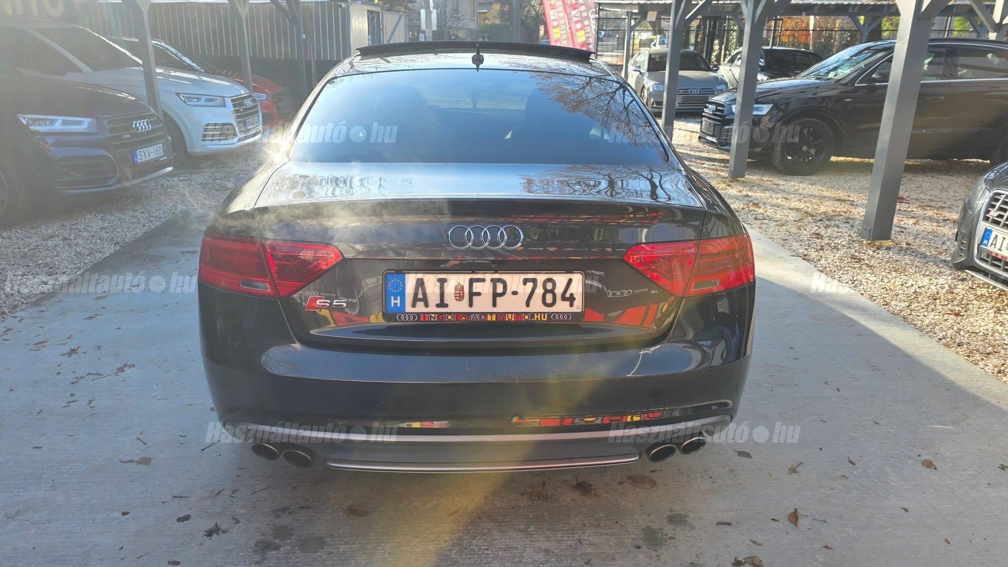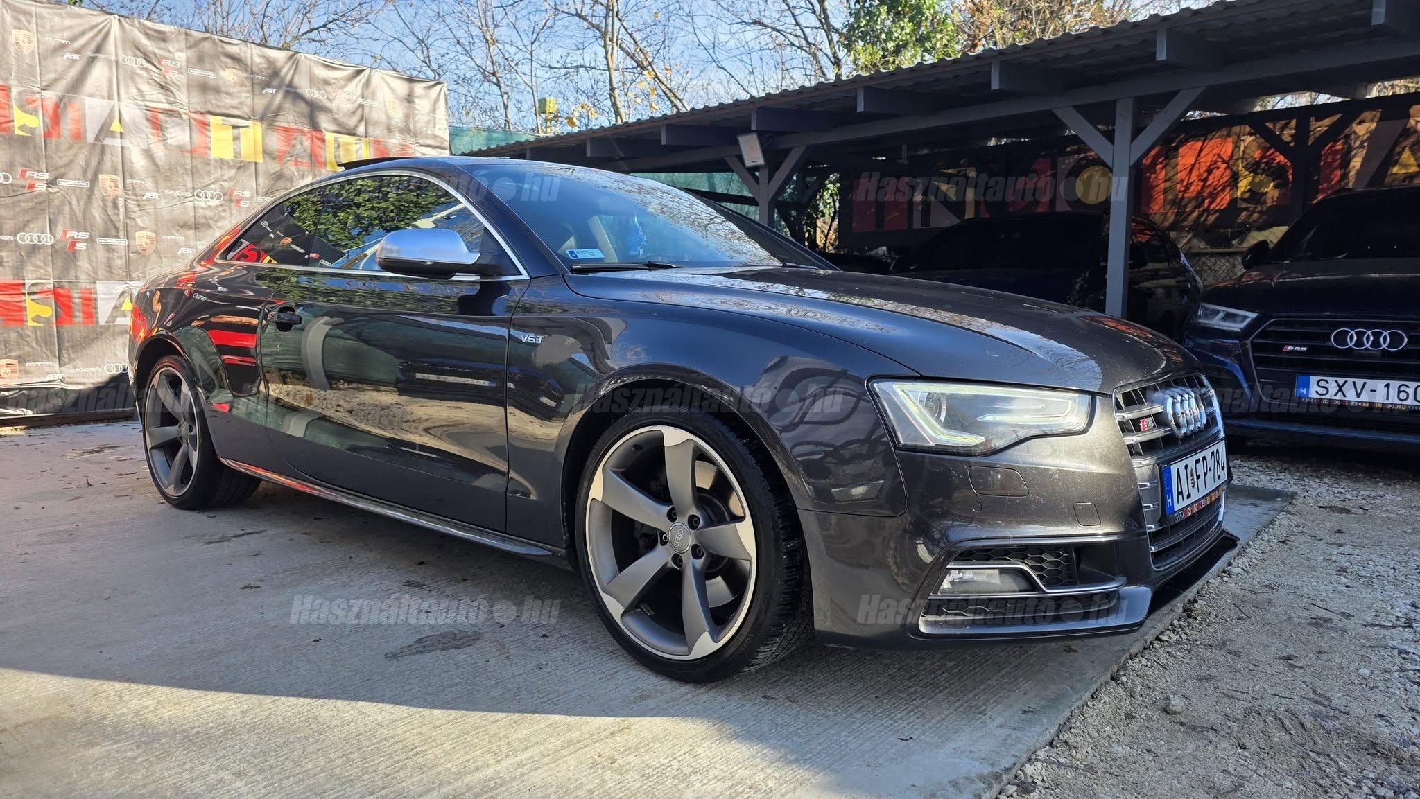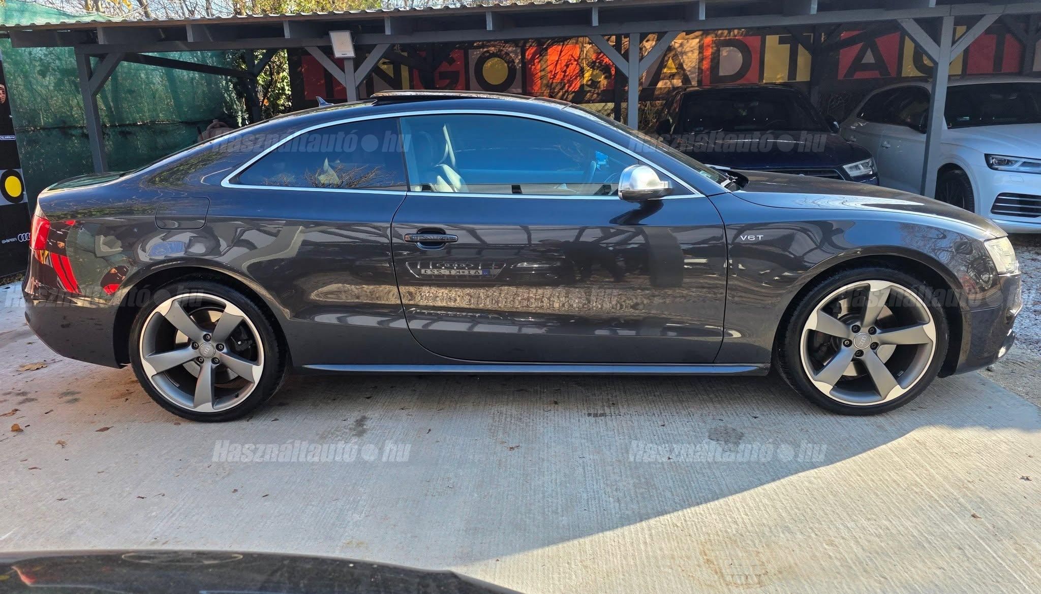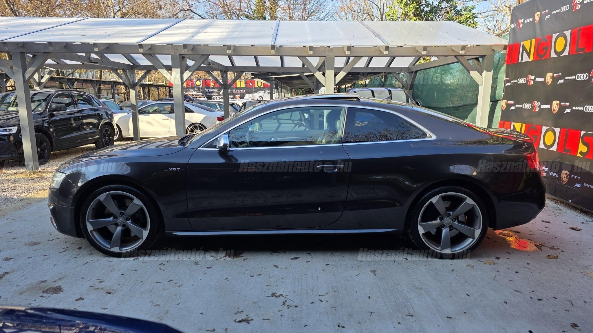 További 80 nagy felbontású kép: facebook/ingolstadtauto oldalunkon! AZ AUTÓK MEGTEKINTÉSÉHEZ MINDEN ESETBEN ELŐZETES TELEFONOS EGYEZTETÉS SZÜKSÉGES! ---------- RÉSZLET FIZETÉSSEL IS ELVIHETŐ: Nincs hitelbírálat, nem gond a BAR lista, nem kérünk jövedelemigazolást sem. Kezdő részlet: 4.5 millió Ft További részletek: 12 x 380.000Ft -havi részletekben egy éven át. NEM tartalmazza a kötelező biztosítás és a CASCO költségét, melyek feltételei a szerződés megkötésének. Magasabb kezdő részlet befizetése esetén a további havi részletek alcsonyabbak lehetnek. Alacsonyabb kezdő részlet befizetésére nincs lehetőség! További feltételekért és információkért keressen minket személyesen vagy telefonon. BANKI HITELÜGYINTÉZÉSben is tudunk segíteni ez 12-84 hónapig terjedő periódusra ütemezhető. Legalább 20% önrésszel vehető fel.----------TÍPUS/ÁLLAPOT---------- A TÍPUSRÓL:A B8-as generáció faceliftes változata ma is kortalan formavilágot képvisel. A kompresszoros V6-os motorral az S5 továbbra is valódi sportos élményt nyújt, miközben a fogyasztás és az üzemeltetési költségek reális szinten maradnak. A kompresszor működésének köszönhetően a töltőnyomás gyakorlatilag azonnal rendelkezésre áll, így nincs turbólyuk és nincs késlekedés a gyorsításnál ez az autó megy, mégpedig nem is kicsit. A quattro hajtás rosszabb időjárási körülmények között is kiváló tapadást és biztonságot ad, míg az S tronic gyors váltásai és kényelmes működése tovább javítja a vezetési élményt.AZ ADOTT AUTÓRÓL:Az autóra jelentős összeget költöttek, amely szemmel láthatóan meg is mutatkozik az állapotán. Fokozatjelző szenzor, kuplung, mechatronika, valamint a váltóolaj és szűrő cseréje is megtörtént mindez a GearMastersnél, Reiter Beninél, ami önmagában is garancia a minőségre. A vezérlés és a hosszbordás szíj szintén cserélve lett, mindkettő egy éven belül. Mindenről fényképes dokumentáció és munkalap rendelkezésre áll. A motortartó bak gyengélkedik, de ezen kívül az autó hibátlan igény esetén ezt is tudjuk cserélni.Gyönyörű Daytona szürke Coupé, megkímélt, kopás- és karcmentes beltérrel. Szerkezetileg és motorikusan kifogástalan, minden extra tökéletesen működik. Az összes tartozék, gyári dokumentáció, két eredeti kulcs, szervizszámlák és fényképek rendelkezésre állnak. A fényezés szép, homogén, az autó teljesen törésmentes. A gépháztetőn enyhe kavicsfelverődés és lakksérülés található, de igény esetén ebben is tudunk segítséget nyújtani.----------EXTRÁK----------Futómű, fékek, kerekekSport felfüggesztés19 könnyűfém felnik (9Jx19) RotorHelytakarékos pótkerékBuktatható panorámatetőKarbon betétekBang&Olufsen hangrendszerIndirekt guminyomás-ellenőrző rendszerKülső felszereltségHátsó spoiler (2-es típus)Alumínium tükörházMemóriás, behajtható, fűthető, automata sötétedésű tükrökSáv és TávolságtartóHőszigetelt üvegezésLED hátsó lámpákElső ködlámpákFényszórómosóXenon bi-funkciós fényszórókKülön nappali menetfényMatt fekete külső díszlécekBelső tér, kényelmi felszerelésekSportülések elölElektromos első ülések memóriávalAlcantara/bőr kárpitAutomata sötétedésű belső tükörElső kartámaszCsomagtér padlóburkolatNavigáció (MID)Fedélzeti számítógépTempomatCsomagtér élvédőOsztatlan hátsó ülés, osztott dönthető támlávalElső-hátsó szőnyegszettBőr/műanyag váltógombElső ISOFIX (jobb első)Hátsó ISOFIXESC menetstabilizátorElső légzsák + kikapcsolható utasoldaliElső oldallégzsák + függönylégzsákImmobilizerBiztonsági öv-ellenőrző elektronikaKerékcsavar lopásgátlóElsősegélycsomag és elakadásjelző háromszögInfotainment, kommunikációMobiltelefon interfészCD-tár + DVD lejátszóHangrendszer (Sound Package 1)HangvezérlésKülső elektromos csatlakozásKomfort és vezetéstámogató rendszerekParkolóradar elöl-hátulDrive SelectEső- és fényérzékelőKlímarendszer PlusKeyless Entry98-as oktánszámú üzemanyag ajánlottSebességkorlátozó (limiter)Start-Stop rendszer fékenergia-visszanyerésselAUTÓINKAT 1-3 ÉVIG TERJEDŐ GARANCIÁVAL IS TUDJUK ÉRTÉKESÍTENI, MEGÁLLAPODÁS SZERINT. Autóbeszámítás vagy bármilyen kérdés esetén a lenti telefonszámon keressen vagy WhatsApp-on, Viberen is elérhetőek vagyunk (email-t ne írjon!). TOVÁBBI KÜLÖNLEGES AUDIKÉRT KÖVESSE KÍNÁLATUNKAT FACEBOOKON: INGOLSTADTAUTO |