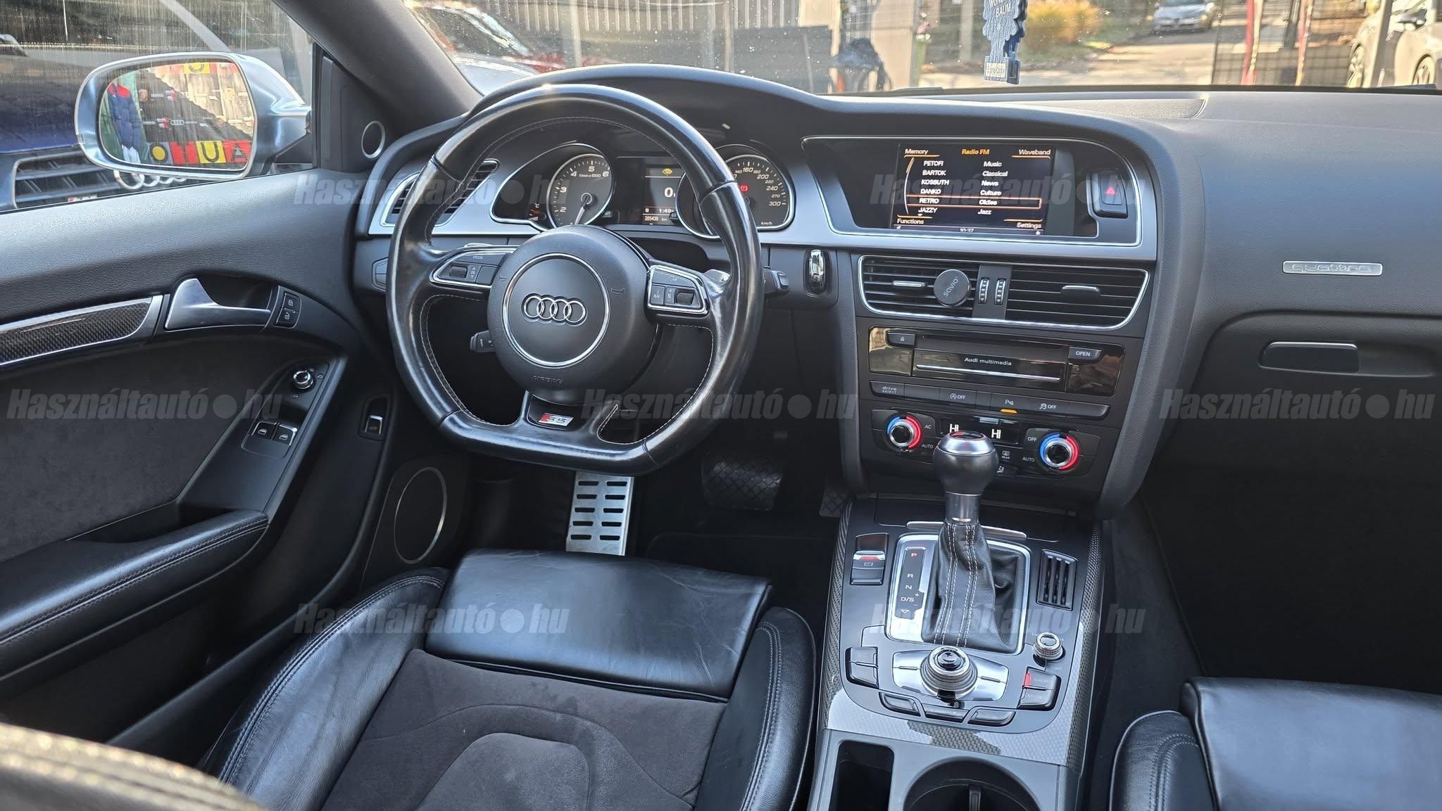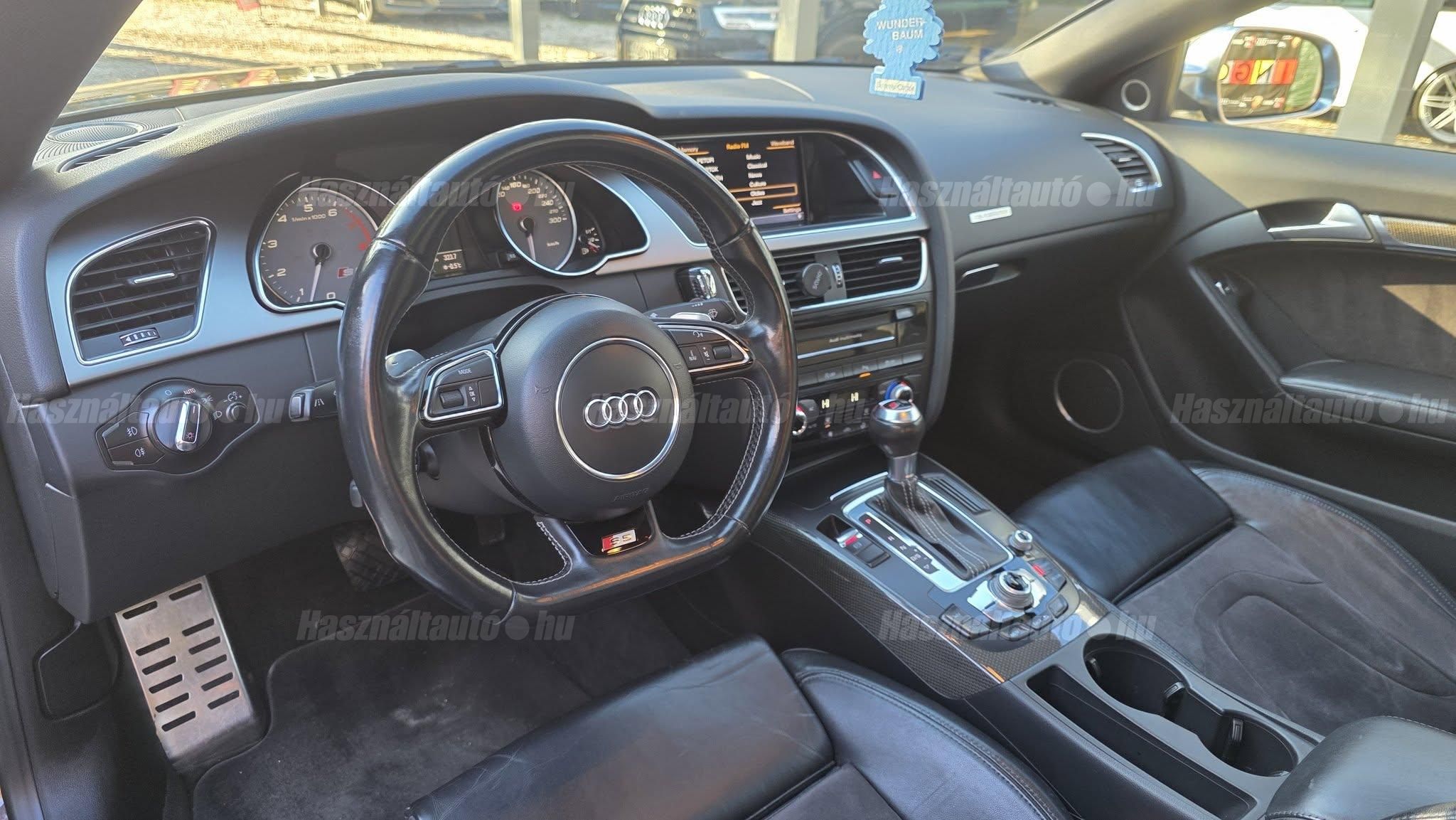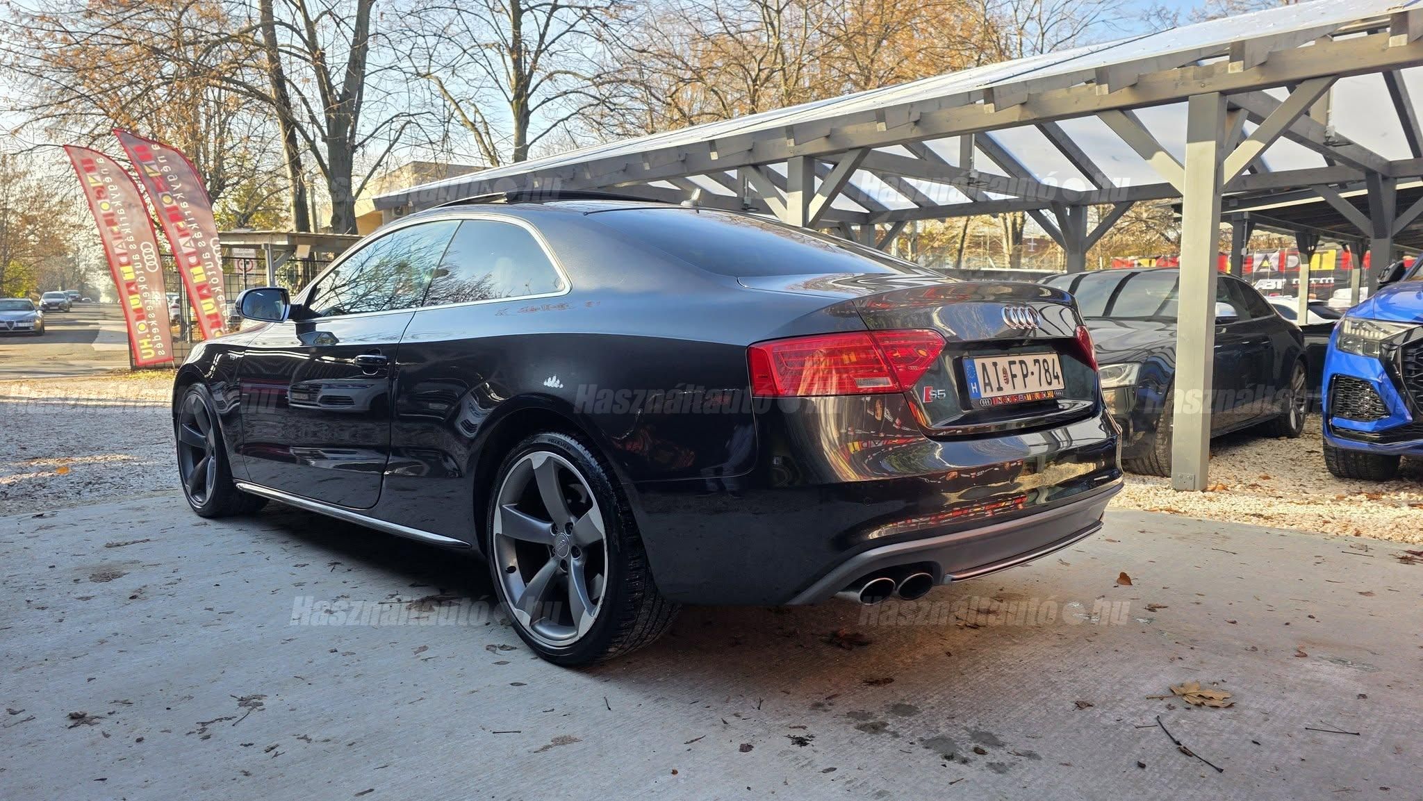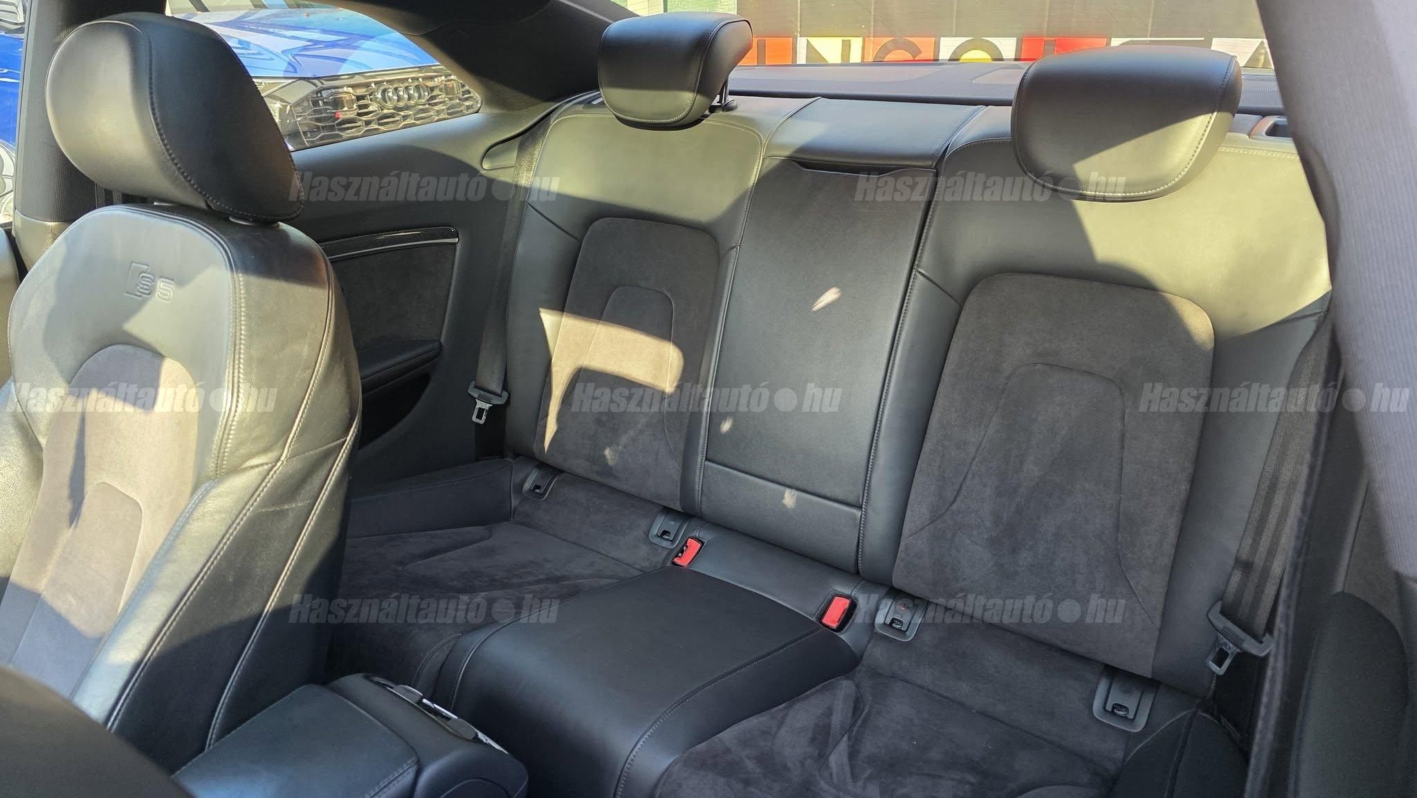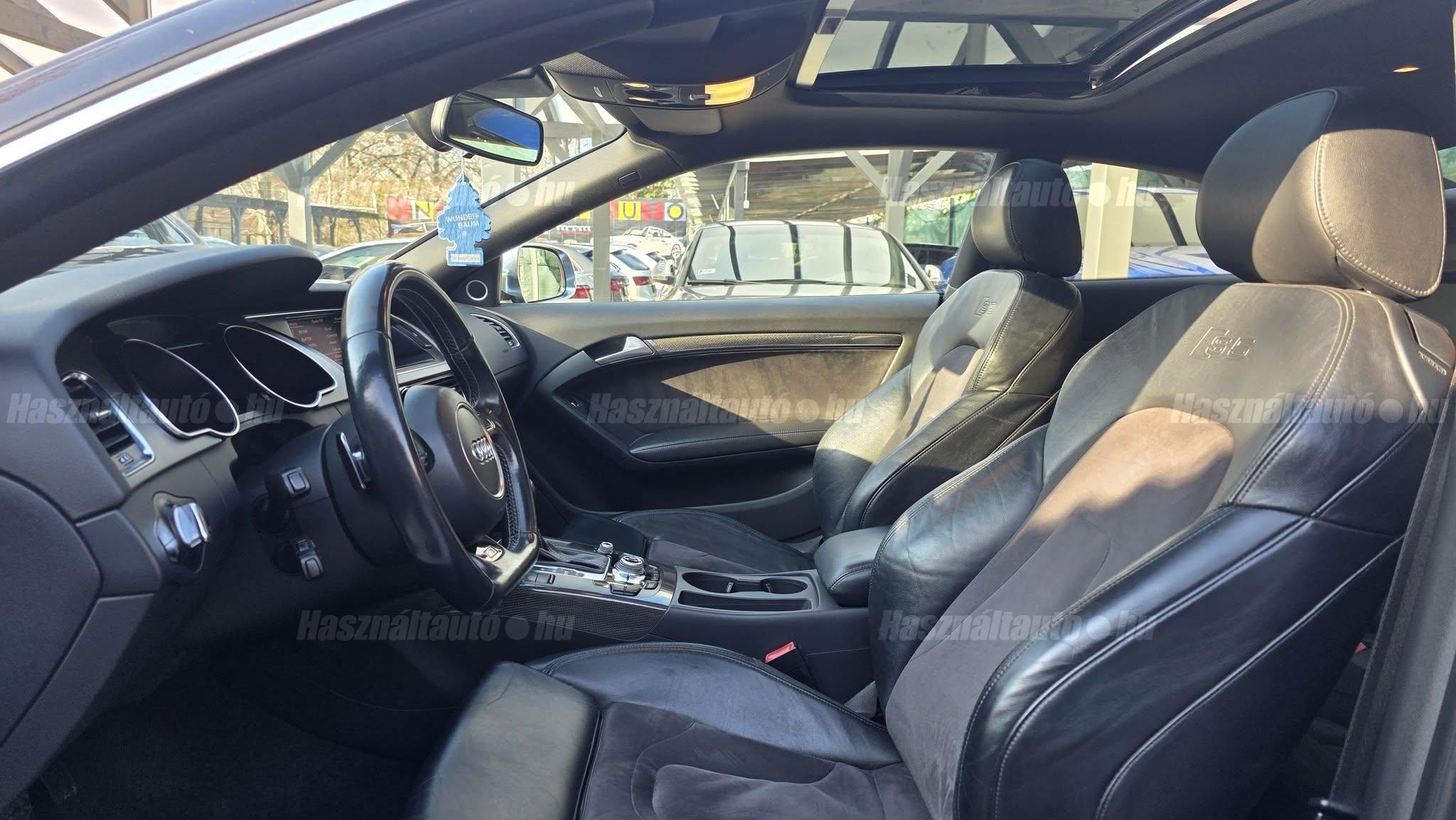 További 80 nagy felbontású kép: facebook/ingolstadtauto oldalunkon! AZ AUTÓK MEGTEKINTÉSÉHEZ MINDEN ESETBEN ELŐZETES TELEFONOS EGYEZTETÉS SZÜKSÉGES! ---------- RÉSZLET FIZETÉSSEL IS ELVIHETŐ: Nincs hitelbírálat, nem gond a BAR lista, nem kérünk jövedelemigazolást sem. Kezdő részlet: 4.5 millió Ft További részletek: 12 x 380.000Ft -havi részletekben egy éven át. NEM tartalmazza a kötelező biztosítás és a CASCO költségét, melyek feltételei a szerződés megkötésének. Magasabb kezdő részlet befizetése esetén a további havi részletek alcsonyabbak lehetnek. Alacsonyabb kezdő részlet befizetésére nincs lehetőség! További feltételekért és információkért keressen minket személyesen vagy telefonon. BANKI HITELÜGYINTÉZÉSben is tudunk segíteni ez 12-84 hónapig terjedő periódusra ütemezhető. Legalább 20% önrésszel vehető fel.----------TÍPUS/ÁLLAPOT---------- A TÍPUSRÓL:A B8-as generáció faceliftes változata ma is kortalan formavilágot képvisel. A kompresszoros V6-os motorral az S5 továbbra is valódi sportos élményt nyújt, miközben a fogyasztás és az üzemeltetési költségek reális szinten maradnak. A kompresszor működésének köszönhetően a töltőnyomás gyakorlatilag azonnal rendelkezésre áll, így nincs turbólyuk és nincs késlekedés a gyorsításnál ez az autó megy, mégpedig nem is kicsit. A quattro hajtás rosszabb időjárási körülmények között is kiváló tapadást és biztonságot ad, míg az S tronic gyors váltásai és kényelmes működése tovább javítja a vezetési élményt.AZ ADOTT AUTÓRÓL:Az autóra jelentős összeget költöttek, amely szemmel láthatóan meg is mutatkozik az állapotán. Fokozatjelző szenzor, kuplung, mechatronika, valamint a váltóolaj és szűrő cseréje is megtörtént mindez a GearMastersnél, Reiter Beninél, ami önmagában is garancia a minőségre. A vezérlés és a hosszbordás szíj szintén cserélve lett, mindkettő egy éven belül. Mindenről fényképes dokumentáció és munkalap rendelkezésre áll. A motortartó bak gyengélkedik, de ezen kívül az autó hibátlan igény esetén ezt is tudjuk cserélni.Gyönyörű Daytona szürke Coupé, megkímélt, kopás- és karcmentes beltérrel. Szerkezetileg és motorikusan kifogástalan, minden extra tökéletesen működik. Az összes tartozék, gyári dokumentáció, két eredeti kulcs, szervizszámlák és fényképek rendelkezésre állnak. A fényezés szép, homogén, az autó teljesen törésmentes. A gépháztetőn enyhe kavicsfelverődés és lakksérülés található, de igény esetén ebben is tudunk segítséget nyújtani.----------EXTRÁK----------Futómű, fékek, kerekekSport felfüggesztés19 könnyűfém felnik (9Jx19) RotorHelytakarékos pótkerékBuktatható panorámatetőKarbon betétekBang&Olufsen hangrendszerIndirekt guminyomás-ellenőrző rendszerKülső felszereltségHátsó spoiler (2-es típus)Alumínium tükörházMemóriás, behajtható, fűthető, automata sötétedésű tükrökSáv és TávolságtartóHőszigetelt üvegezésLED hátsó lámpákElső ködlámpákFényszórómosóXenon bi-funkciós fényszórókKülön nappali menetfényMatt fekete külső díszlécekBelső tér, kényelmi felszerelésekSportülések elölElektromos első ülések memóriávalAlcantara/bőr kárpitAutomata sötétedésű belső tükörElső kartámaszCsomagtér padlóburkolatNavigáció (MID)Fedélzeti számítógépTempomatCsomagtér élvédőOsztatlan hátsó ülés, osztott dönthető támlávalElső-hátsó szőnyegszettBőr/műanyag váltógombElső ISOFIX (jobb első)Hátsó ISOFIXESC menetstabilizátorElső légzsák + kikapcsolható utasoldaliElső oldallégzsák + függönylégzsákImmobilizerBiztonsági öv-ellenőrző elektronikaKerékcsavar lopásgátlóElsősegélycsomag és elakadásjelző háromszögInfotainment, kommunikációMobiltelefon interfészCD-tár + DVD lejátszóHangrendszer (Sound Package 1)HangvezérlésKülső elektromos csatlakozásKomfort és vezetéstámogató rendszerekParkolóradar elöl-hátulDrive SelectEső- és fényérzékelőKlímarendszer PlusKeyless Entry98-as oktánszámú üzemanyag ajánlottSebességkorlátozó (limiter)Start-Stop rendszer fékenergia-visszanyerésselAUTÓINKAT 1-3 ÉVIG TERJEDŐ GARANCIÁVAL IS TUDJUK ÉRTÉKESÍTENI, MEGÁLLAPODÁS SZERINT. Autóbeszámítás vagy bármilyen kérdés esetén a lenti telefonszámon keressen vagy WhatsApp-on, Viberen is elérhetőek vagyunk (email-t ne írjon!). TOVÁBBI KÜLÖNLEGES AUDIKÉRT KÖVESSE KÍNÁLATUNKAT FACEBOOKON: INGOLSTADTAUTO |