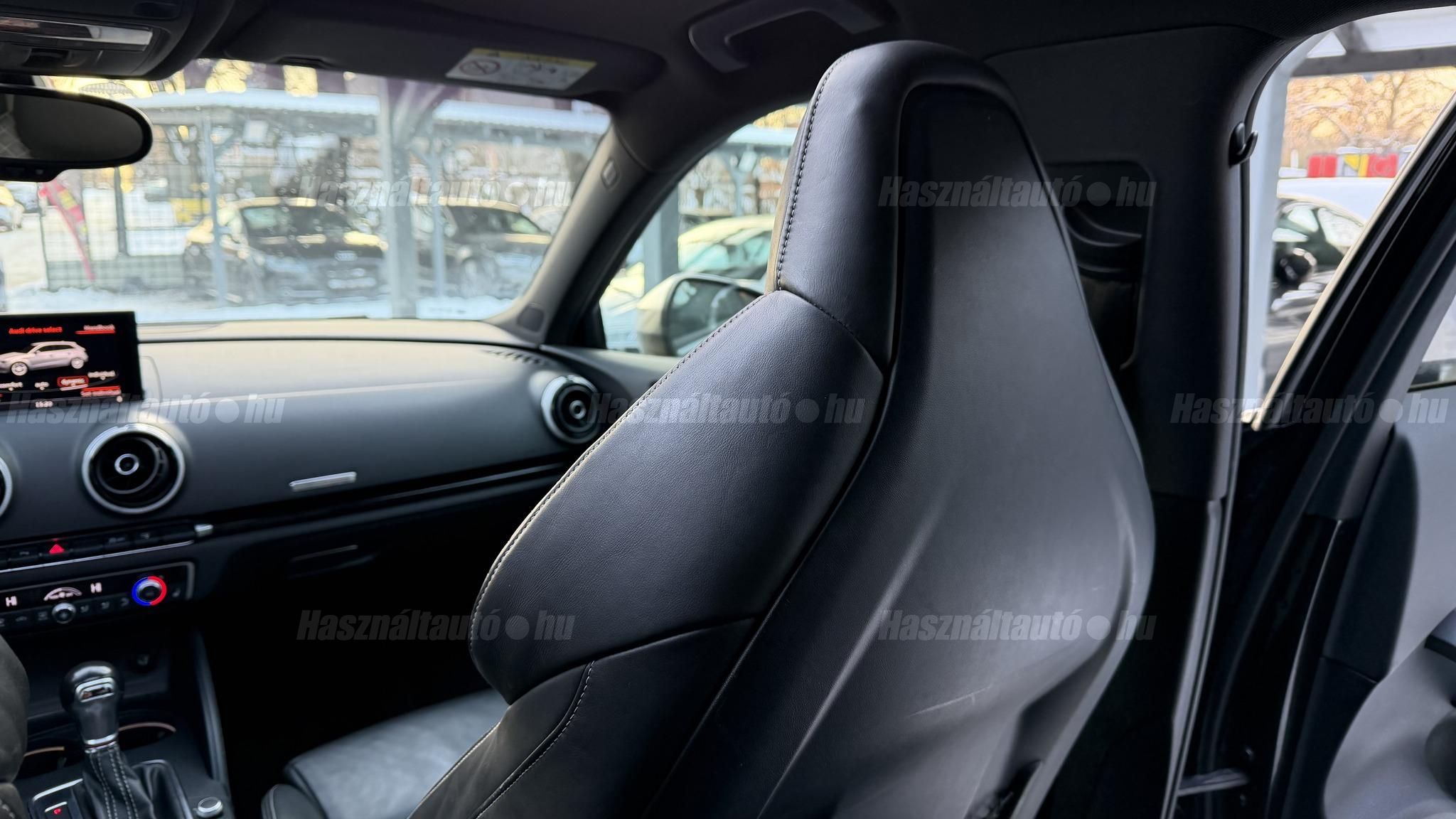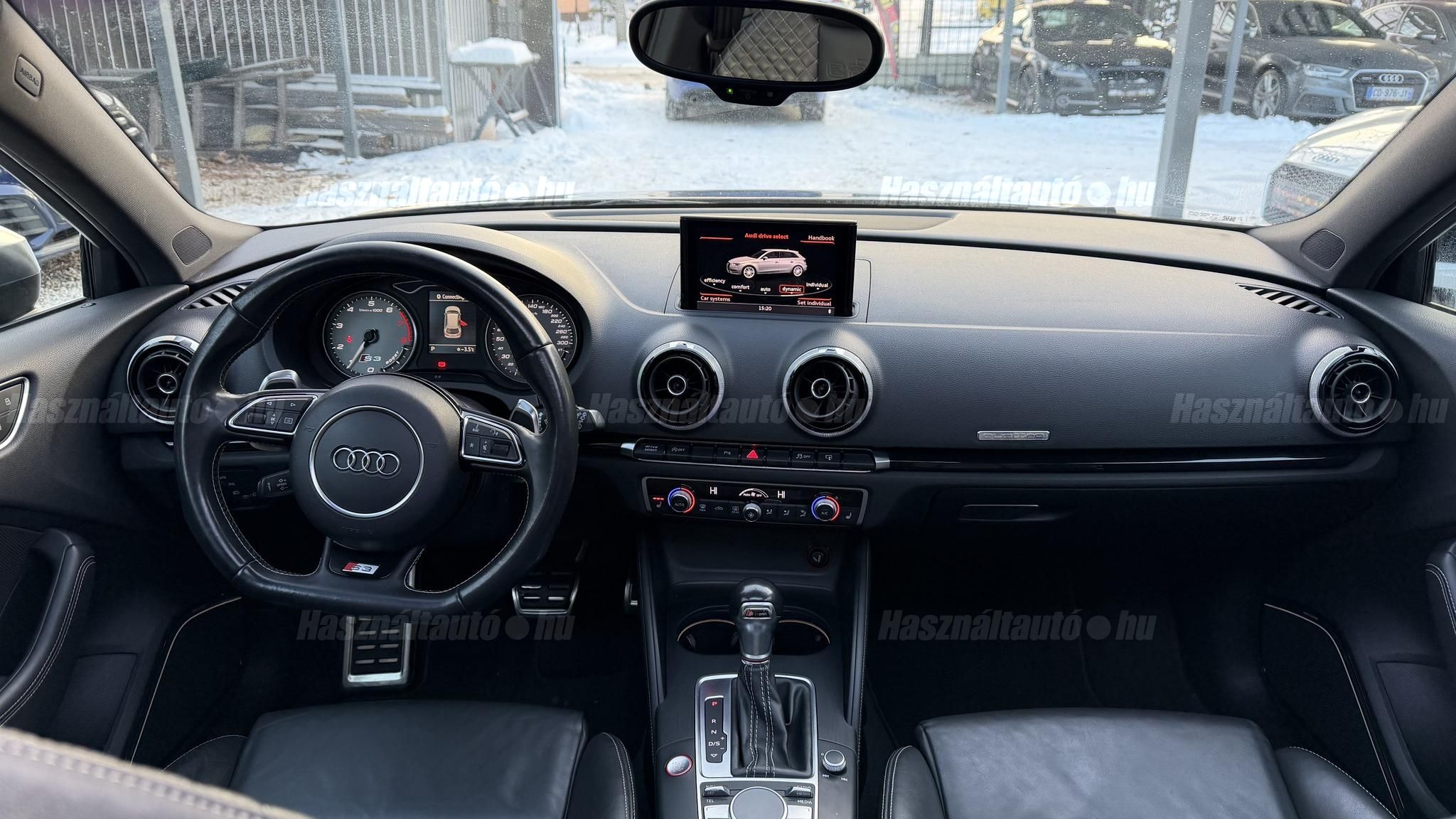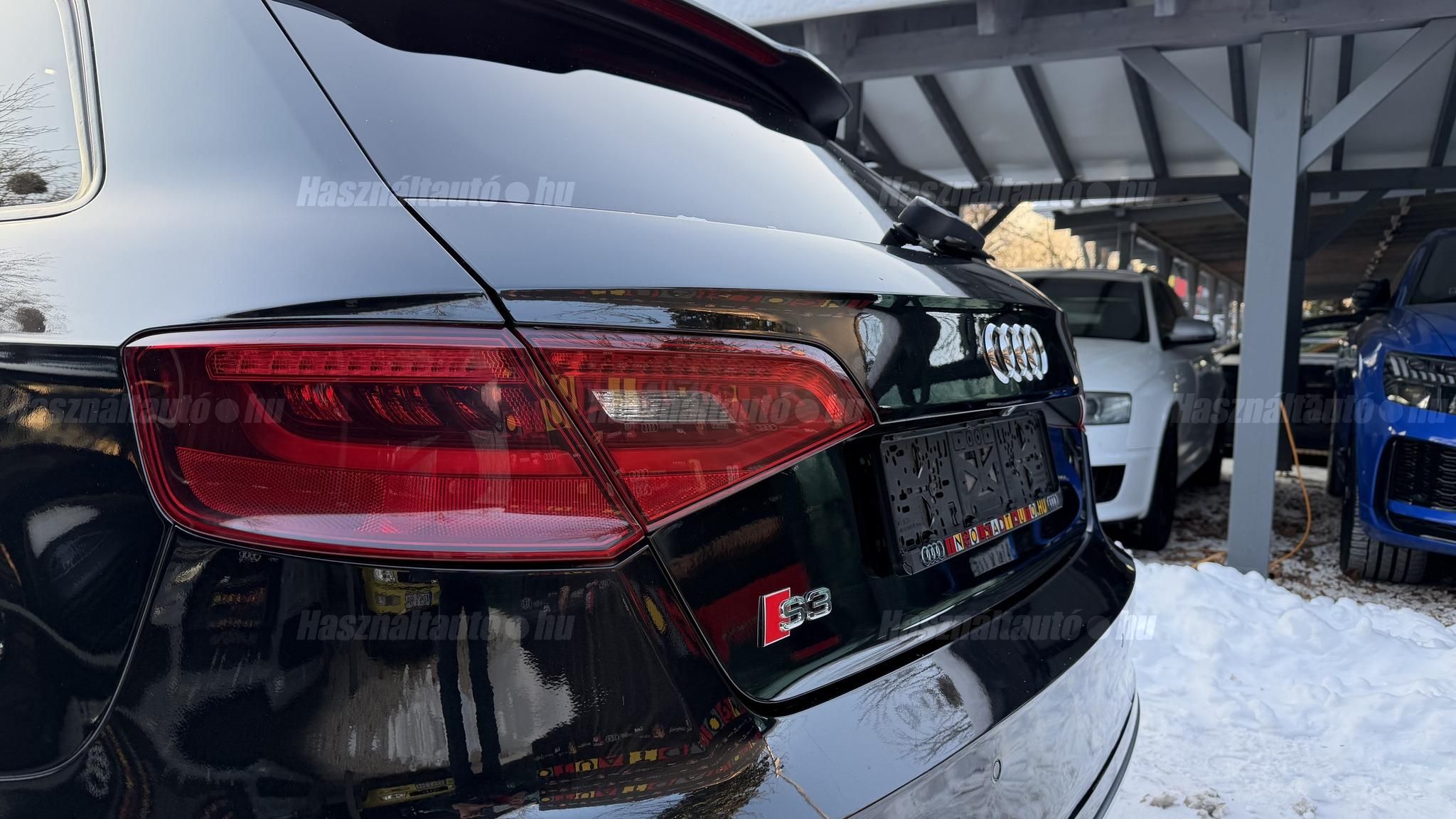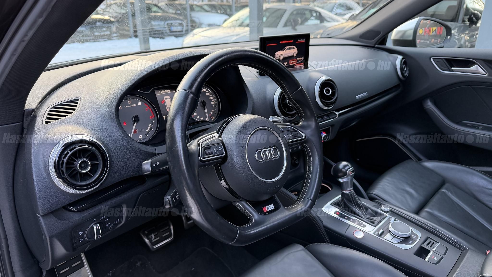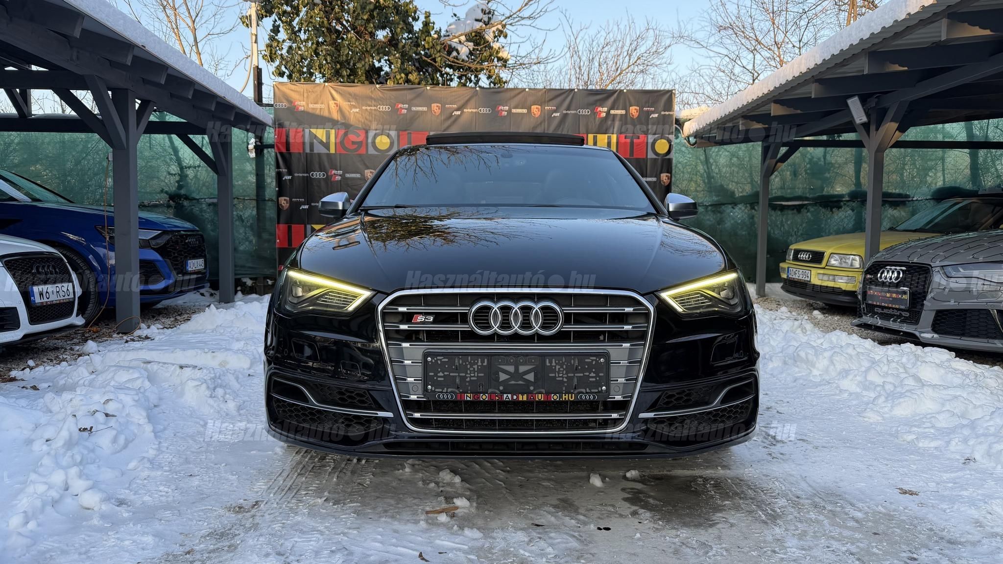 További 80 nagy felbontású kép: facebook/ingolstadtauto oldalunkon! AZ AUTÓK MEGTEKINTÉSÉHEZ MINDEN ESETBEN ELŐZETES TELEFONOS EGYEZTETÉS SZÜKSÉGES! ---------- RÉSZLET FIZETÉSSEL IS ELVIHETŐ: Nincs hitelbírálat, nem gond a BAR lista, nem kérünk jövedelemigazolást sem. Kezdő részlet: 5 millió Ft További részletek: 12 x 270.000Ft -havi részletekben egy éven át. NEM tartalmazza a kötelező biztosítás és a CASCO költségét, melyek feltételei a szerződés megkötésének. Magasabb kezdő részlet befizetése esetén a további havi részletek alcsonyabbak lehetnek. Alacsonyabb kezdő részlet befizetésére nincs lehetőség! További feltételekért és információkért keressen minket személyesen vagy telefonon. BANKI HITELÜGYINTÉZÉSben is tudunk segíteni ez 12-84 hónapig terjedő periódusra ütemezhető. Legalább 20% önrésszel vehető fel.----------TÍPUS / ÁLLAPOT----------A TÍPUSRÓL:Egy 2014-es Audi S3 Sportback egy ötajtós kompakt, amely a sportos teljesítményt a mindennapi praktikummal ötvözi. A 2,0 literes turbós TFSI motor 300 LE-t és 380 Nm-t ad le, így 0100 km/h mindössze 5 másodperc alatt futja, a quattro összkerékhajtás és a sportfutómű precíz és biztonságos vezetést bíztosít legyen az bármilyen időjárási körülmény. Az S tronic váltó gyors kapcsolásai és kényelmes működése tovább fokozza a sportos vezetési élményt.AZ ADOTT AUTÓRÓL:Szép Mythos Black színű Sportback. Az autó fényezése szép és homogén. Az autó rongálásból kifolyólag körbe volt fújva, a festékvastagság 300 mikronnál sehol sem több. A javítási munka hibátlan minőségben lett rajta elvégezve. A gyári 18 colos Audi felnik állapota padkanyomos, felújításra szorulnak, ezeknek a kijavítása benne van az árban. 2023-as nyári gumik állapota jó. Beltere megkímélt, kopás-, karc- és kiülésmentes. Szerkezetileg és motorikusan hibátlan, minden extra tökéletesen működik. Minden tartozék, gyári dokumentáció, végig vezetett szervizkönyv és 2 db eredeti kulcs rendelkezésre áll.----------EXTRÁK----------Kipörgésgátló rendszer (ASR)Belső kárpitozás: prémium nappa bőrEasy-Entry beszállás megkönnyített hozzáférésDupla napellenzőBelső felszerelés: Alumínium befejezés / megjelenésAdaptív féklámpaCsomagtér takaró / SötétítőElektromechanikus kézifékFékrendszer visszanyerési rendszerrelLED irányjelzők az oldaltükrökben integrálvaFűthető hátsó ablak(ok)Bejárati küszöbök alumínium bevonattal és logóvalMotor 2.0 Ltr. - 221 kW 16V TFSIDohányos csomagTároló- és csomagtartó csomagCsomag: AmbícióTextil mennyezeti kárpitozás, feketeAkusztikus üveg szélvédőFejtámlák hátul (3 pozíció)Dugasz (12V csatlakozás) az elülső középső konzolbanPótkerék, mint vészkerekKarosszéria: 4 ajtóElső ülések kihúzható combtámasszalÁllítható magasságú első ülésekKörnyezetvédelmi rendszer Euro 6 szabványBelső: Kibővített mono. pur felszerelésBelső felszerelés: Betétek 3D fekete bevonattal/aspektussalKerék lopásgátló (Zárak felül elhelyezve)Audi connect (alap internet szolgáltatás)Világítási csomagHangrendszer Bang & OlufsenBelső visszapillantó tükör automatikus vakításgátló rendszerrelMegfordítható csomagtér szönyegMegvilágított sminktükörHátsó ablakok sötétítettekKönnyűfém keréktárcsák 7,5x18 (5 párhuzamos küllő, Részben polírozott)Gumikontroll mutatóGuminyomás-ellenőrző rendszerLED vetítőLED hátsó lámpákFékerősítőOsztható/hajtható hátsó ülésdőElülső középső kartámaszZöld színű atermikus üvegKözponti zár távirányítássalFény- és esőérzékelőTetőspoilerElektromosan állítható, fűthető és behajtható külső visszapillantó tükörAszférikus külső tükör, balKonvex külső tükrök, jobbKülső tükör karosszériaszínbenSebességszabályozó rendszer (tempomat)Kristály hatású festékStart/Stop rendszer6 sebességes váltó - duplakuplungos S-tronic sbességváltóKormánykerék (sport bőr - 3 küllős)Fényszóró-mosó rendszer (fényszóró mosó)Fényszóró-mosó rendszer (fényszóró mosó)Audi Drive SelectAlváz/felfüggesztések szabályozott lengéscsillapítással (Magnetic Ride)Isofix rögzítések gyermeküléshezVezetéstámogató rendszer: Távolsági fényszóró asszisztensVezetési asszisztens: Utasvédelmi rendszer (Audi pre sense basic)Nappali menetjelző lámpákZáró-/indítórendszer Speciális kulcs (Kényelmi kulcs-Comfort Key)AUTÓINKAT 1-3 ÉVIG TERJEDŐ GARANCIÁVAL IS TUDJUK ÉRTÉKESÍTENI, MEGÁLLAPODÁS SZERINT. Autóbeszámítás vagy bármilyen kérdés esetén a lenti telefonszámon keressen vagy WhatsApp-on, Viberen is elérhetőek vagyunk (email-t ne írjon!). TOVÁBBI KÜLÖNLEGES AUDIKÉRT KÖVESSE KÍNÁLATUNKAT FACEBOOKON: INGOLSTADTAUTO |