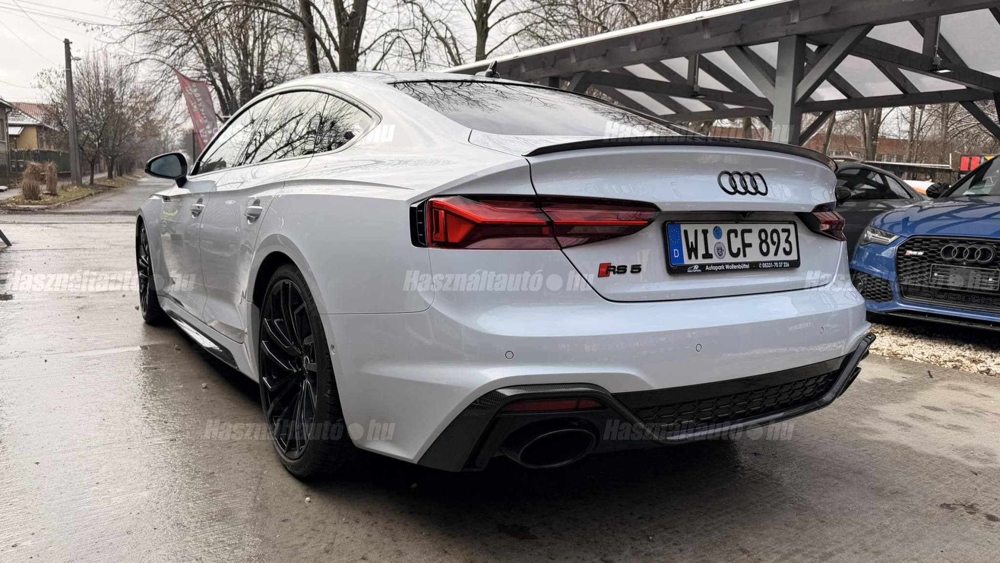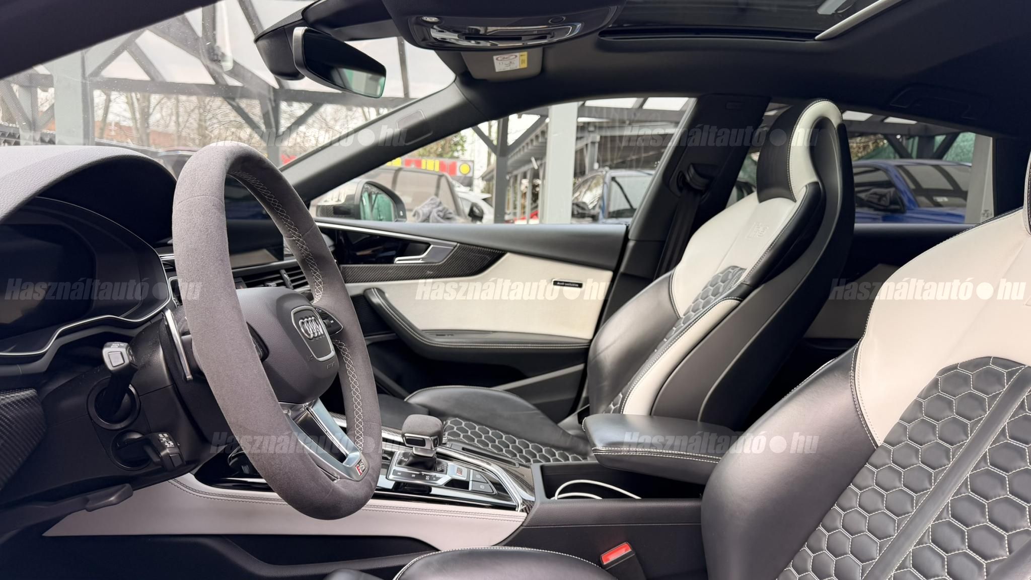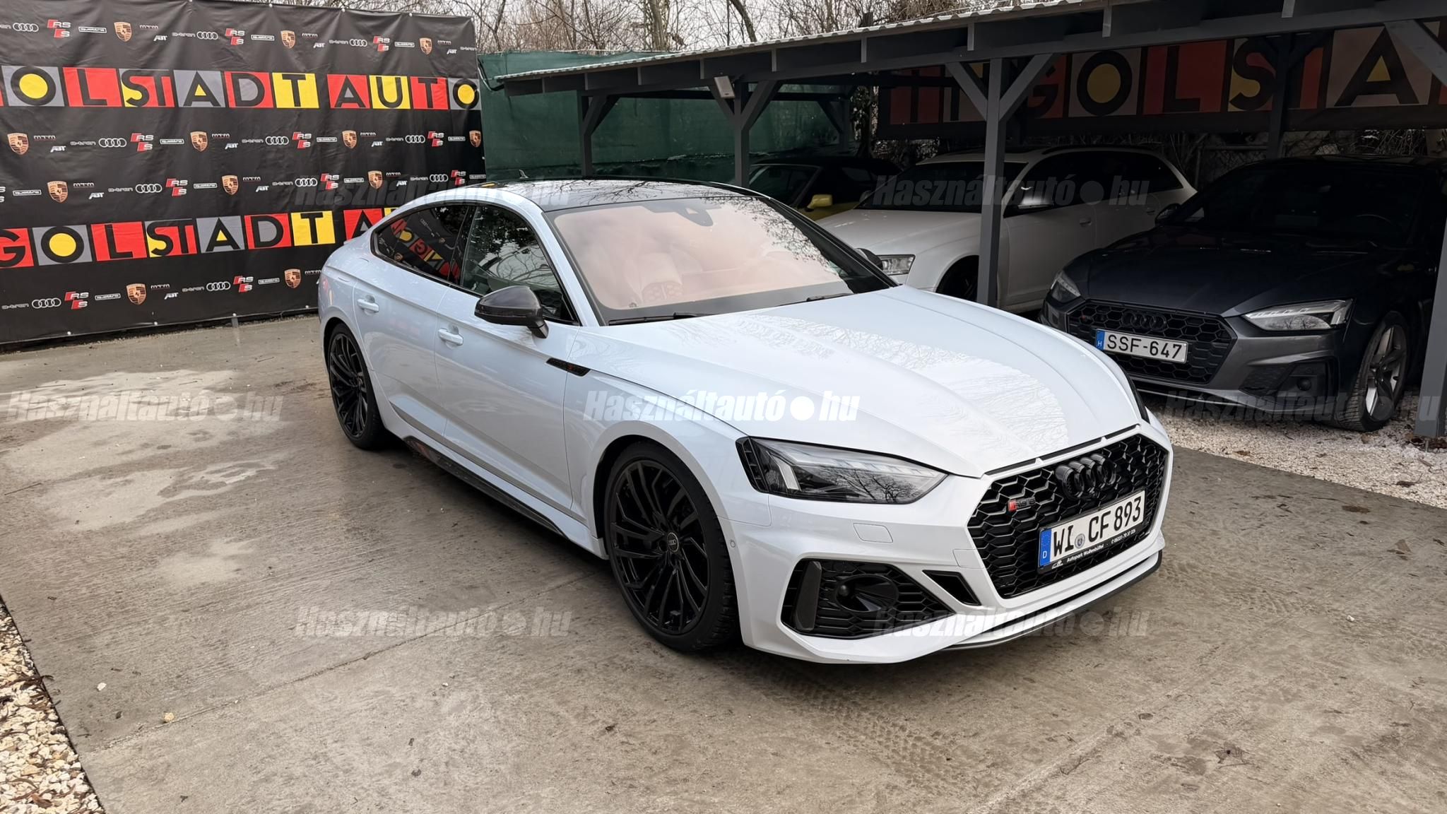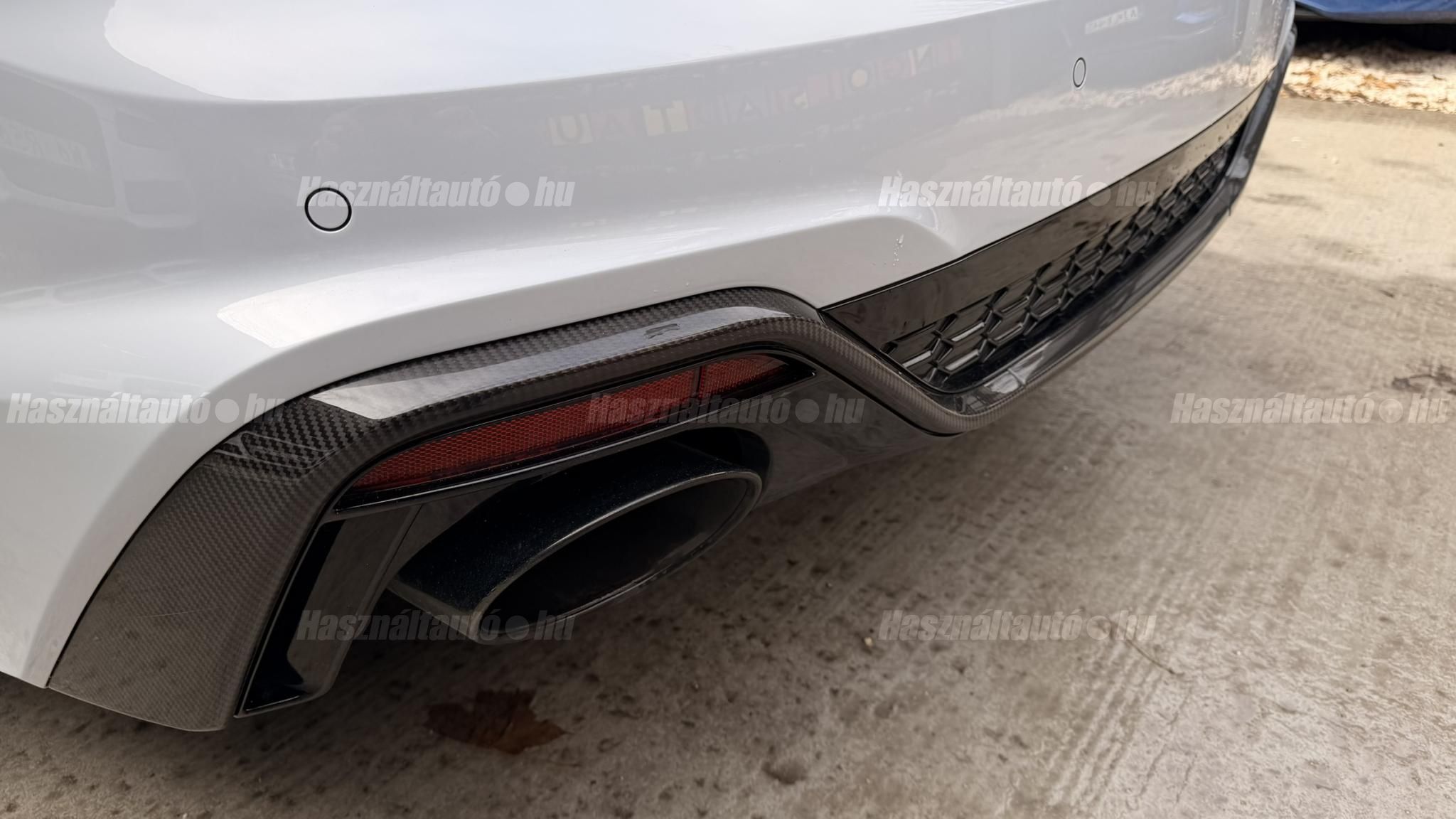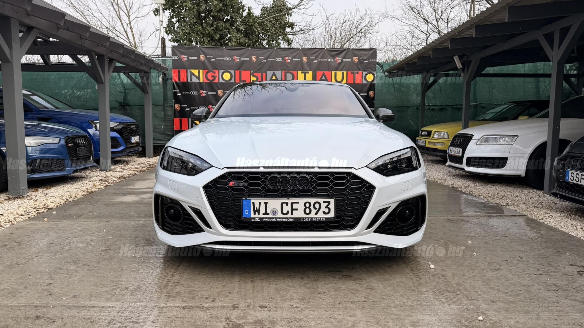További 50 nagy felbontású kép: facebook/ingolstadtauto oldalunkon! AZ AUTÓK MEGTEKINTÉSÉHEZ MINDEN ESETBEN ELŐZETES TELEFONOS EGYEZTETÉS SZÜKSÉGES! BANKI HITELÜGYINTÉZÉSben is tudunk segíteni ez 12-84 hónapig terjedő periódusra ütemezhető. Legalább 20% önrésszel vehető fel.----------TÍPUS/ÁLLAPOT----------A TÍPUSRÓL: Az Audi palettáján kevés modell képvisel ennyire markáns, sportos karaktert, mint az Audi RS5. Szerintünk a márka egyik legjobban eltalált formája: valódi, baltával faragott, éles vonalak, pazar arányok egy autó, amely nem kér figyelmet, hanem egyszerűen megkapja.A 2,9 literes, duplaturbós V6-os benzinmotor erőtartaléka már gyári állapotban is meggyőző, a 8 fokozatú tiptronic automata váltó pedig gyors és határozott működésével tökéletesen illik a karakteréhez. A ZF 8HP az egyik legmegbízhatóbb konstrukció a kategóriában. A quattro összkerékhajtás ahogyan minden RS modell esetében itt is alapfelszereltség, így a komoly teljesítmény ellenére az autó könnyen vezethető és meglepően kezes marad.Az RS5 motorjának egyik legnagyobb különlegessége, hogy a két turbófeltöltőt nem a motor oldalára, hanem a két hengersor közé, az úgynevezett V-térbe építették be. Miért jó ez? A kipufogógázoknak rövidebb utat kell megtenniük, így a gázreakció rendkívül gyors: minimális a turbólyuk, és szinte azonnal érkezik a brutális tolóerő, amint rálépsz a gázpedálra.Ha oldalról nézed az RS5-öt, feltűnnek a szélesített sárvédőívek a kerekek felett. Az Audi tervezői ezeket az íveket az 1980-as évek legendás Ur-Quattro raliversenyautójáról kölcsönözték. Ez egy tudatos tisztelgés a múlt előtt, amely vizuálisan is jelzi: ez az autó az aszfalthoz van ragasztva.AZ ADOTT AUTÓRÓL: Gyönyörű szép fehér színű sportback. Törésmentes, fényezése szép, homogén mindenhol. A 20 colos gyári Audi Sport felnik állapota sérülésmentes. Jelenleg jó állapotú téli gumikkal szerelve. A fékrendszer állapota jó, fékbetétek nincsenek kopásjelzőn. Megkímélt beltér, kopás/karc/kiülésmentes mint az új. Szerkezetileg és motorikusan hibátlan, minden extra tökéletesen működik. Végig az autó márkaszervizben Porsche Pest-nél kapta a teljes körű karbantartást, minden szervizdokumentáció rendelkezésre áll. Minden tartozék, összes gyári dokumentáció, vezetett szervizkönyv, 2db eredeti kulcs rendelkezésre áll.----------EXTRÁK----------Külső carbon csomag Belső carbon csomag Elöl-hátul kameraElöl-hátul parkolóradarSávtartó rendszerHolttérfigyelő rendszerTávolságtartó tempomatKerámia fék 360-fokos kamera Virtual Cockpit Plus Bang&Olufsen premium autohifi, Audi ConnectTáblafelismerőHead up display, Masszázsülések 2x, Ülésfütés, 3 zónás digitális klíma, Élektromosan állítható memóriás vezetőülésVilágitó alumínium küszöbbetétek, Alcantara sportkormányFékasszisztens, Bi-color S-sport kagylóülések méhsejtrácsos fehér kontrasztvarrássalFull bőr kárpitozás, S fekete tetőkárpit, Elektronikusan nyíló/záródó csomagtérajtó, Nyitaható panorámatetőMultikormány, Kormányváltó, Audi Drive Select, Magyar menü, Vezeték nélküli telefontöltő a középkonzolon, Magyarnyelvű hangutasítás, Audi Pre Sense, Isofix, Magnetic Ride, Ledes indexek, Külső/belső fénycsomag, Audi Ceramic féknyergek, Fekete-fehér nappabőr ülések, Start/stop, Színezett hővédő üvegezés, Komfort bejutás, Kulcsnélküli indítás, SRA…AUTÓINKAT 1-3 ÉVIG TERJEDŐ GARANCIÁVAL IS TUDJUK ÉRTÉKESÍTENI, MEGÁLLAPODÁS SZERINT. Autóbeszámítás vagy bármilyen kérdés esetén a lenti telefonszámon keressen vagy WhatsApp-on, Viberen is elérhetőek vagyunk (email-t ne írjon!). TOVÁBBI KÜLÖNLEGES AUDIKÉRT KÖVESSE KÍNÁLATUNKAT FACEBOOKON: INGOLSTADTAUTO |