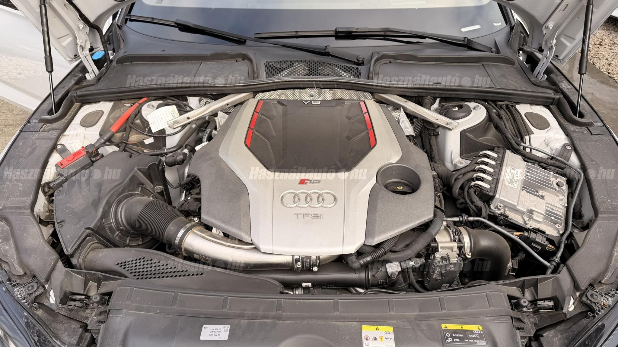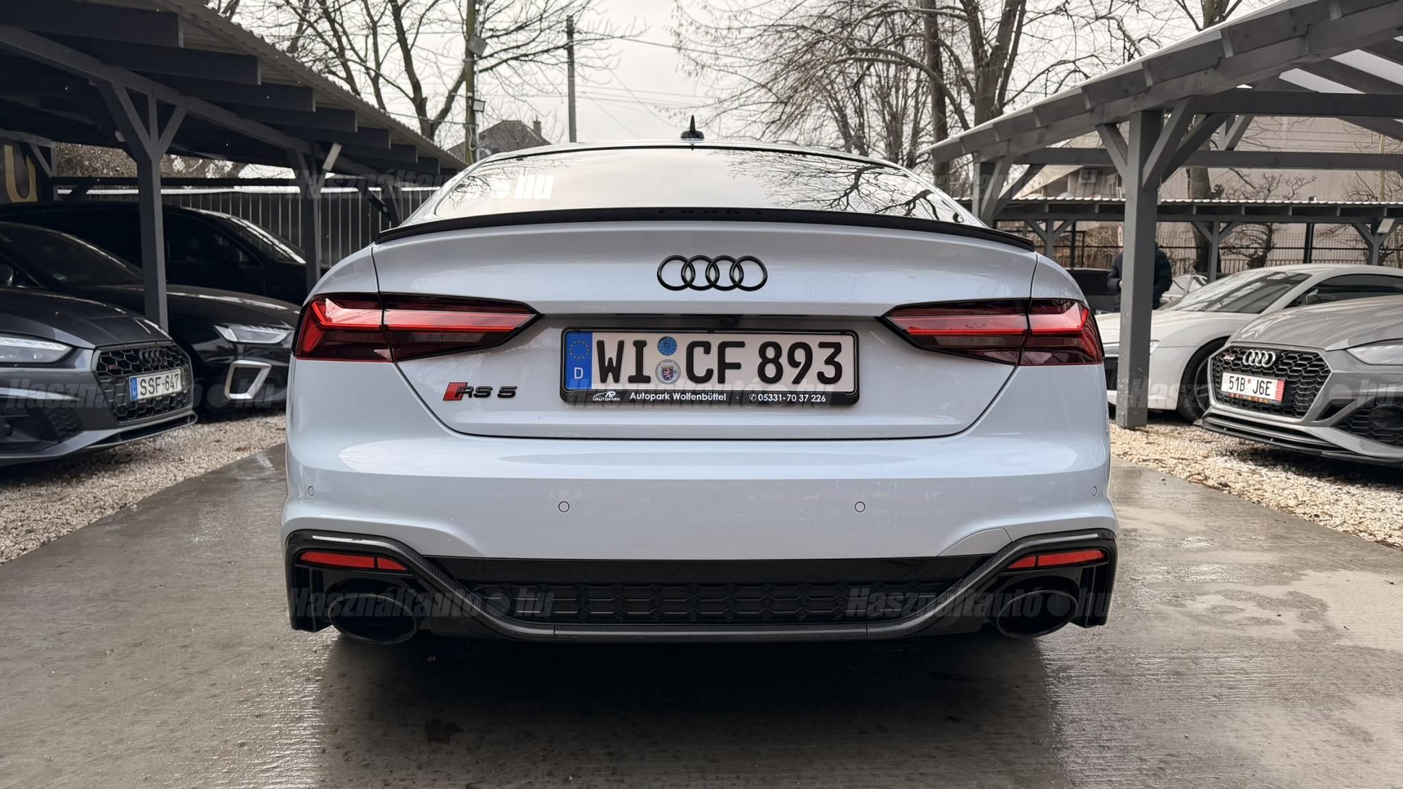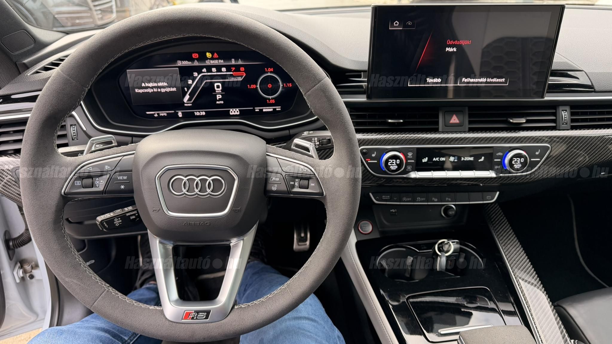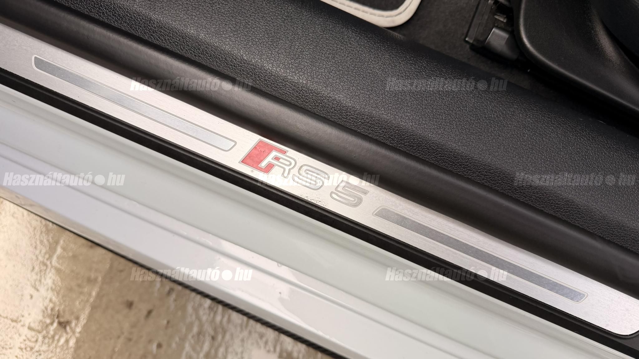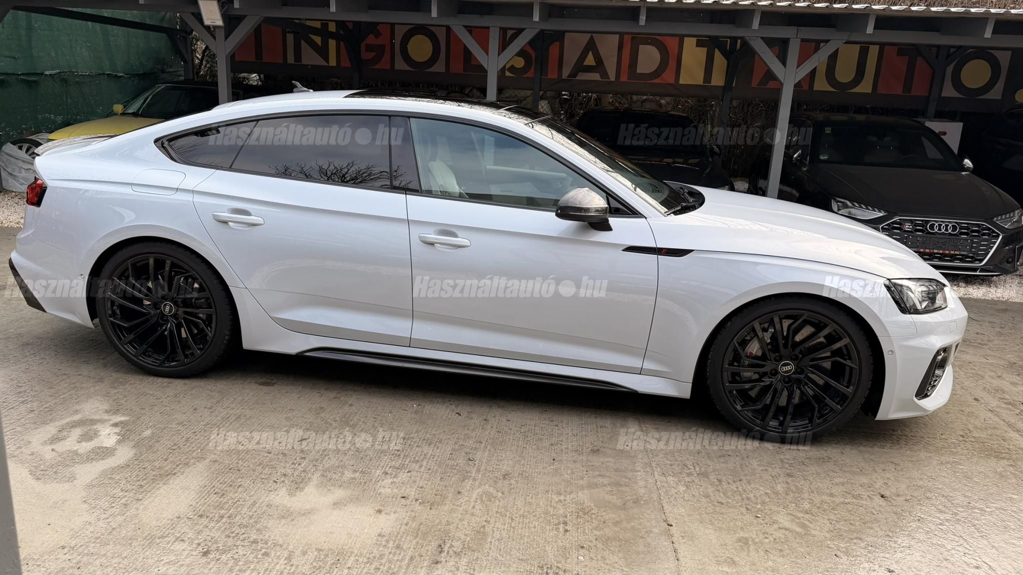 További 50 nagy felbontású kép: facebook/ingolstadtauto oldalunkon! AZ AUTÓK MEGTEKINTÉSÉHEZ MINDEN ESETBEN ELŐZETES TELEFONOS EGYEZTETÉS SZÜKSÉGES! BANKI HITELÜGYINTÉZÉSben is tudunk segíteni ez 12-84 hónapig terjedő periódusra ütemezhető. Legalább 20% önrésszel vehető fel.----------TÍPUS/ÁLLAPOT----------A TÍPUSRÓL: Az Audi palettáján kevés modell képvisel ennyire markáns, sportos karaktert, mint az Audi RS5. Szerintünk a márka egyik legjobban eltalált formája: valódi, baltával faragott, éles vonalak, pazar arányok egy autó, amely nem kér figyelmet, hanem egyszerűen megkapja.A 2,9 literes, duplaturbós V6-os benzinmotor erőtartaléka már gyári állapotban is meggyőző, a 8 fokozatú tiptronic automata váltó pedig gyors és határozott működésével tökéletesen illik a karakteréhez. A ZF 8HP az egyik legmegbízhatóbb konstrukció a kategóriában. A quattro összkerékhajtás ahogyan minden RS modell esetében itt is alapfelszereltség, így a komoly teljesítmény ellenére az autó könnyen vezethető és meglepően kezes marad.Az RS5 motorjának egyik legnagyobb különlegessége, hogy a két turbófeltöltőt nem a motor oldalára, hanem a két hengersor közé, az úgynevezett V-térbe építették be. Miért jó ez? A kipufogógázoknak rövidebb utat kell megtenniük, így a gázreakció rendkívül gyors: minimális a turbólyuk, és szinte azonnal érkezik a brutális tolóerő, amint rálépsz a gázpedálra.Ha oldalról nézed az RS5-öt, feltűnnek a szélesített sárvédőívek a kerekek felett. Az Audi tervezői ezeket az íveket az 1980-as évek legendás Ur-Quattro raliversenyautójáról kölcsönözték. Ez egy tudatos tisztelgés a múlt előtt, amely vizuálisan is jelzi: ez az autó az aszfalthoz van ragasztva.AZ ADOTT AUTÓRÓL: Gyönyörű szép fehér színű sportback. Törésmentes, fényezése szép, homogén mindenhol. A 20 colos gyári Audi Sport felnik állapota sérülésmentes. Jelenleg jó állapotú téli gumikkal szerelve. A fékrendszer állapota jó, fékbetétek nincsenek kopásjelzőn. Megkímélt beltér, kopás/karc/kiülésmentes mint az új. Szerkezetileg és motorikusan hibátlan, minden extra tökéletesen működik. Végig az autó márkaszervizben Porsche Pest-nél kapta a teljes körű karbantartást, minden szervizdokumentáció rendelkezésre áll. Minden tartozék, összes gyári dokumentáció, vezetett szervizkönyv, 2db eredeti kulcs rendelkezésre áll.----------EXTRÁK----------Külső carbon csomag Belső carbon csomag Elöl-hátul kameraElöl-hátul parkolóradarSávtartó rendszerHolttérfigyelő rendszerTávolságtartó tempomatKerámia fék 360-fokos kamera Virtual Cockpit Plus Bang&Olufsen premium autohifi, Audi ConnectTáblafelismerőHead up display, Masszázsülések 2x, Ülésfütés, 3 zónás digitális klíma, Élektromosan állítható memóriás vezetőülésVilágitó alumínium küszöbbetétek, Alcantara sportkormányFékasszisztens, Bi-color S-sport kagylóülések méhsejtrácsos fehér kontrasztvarrássalFull bőr kárpitozás, S fekete tetőkárpit, Elektronikusan nyíló/záródó csomagtérajtó, Nyitaható panorámatetőMultikormány, Kormányváltó, Audi Drive Select, Magyar menü, Vezeték nélküli telefontöltő a középkonzolon, Magyarnyelvű hangutasítás, Audi Pre Sense, Isofix, Magnetic Ride, Ledes indexek, Külső/belső fénycsomag, Audi Ceramic féknyergek, Fekete-fehér nappabőr ülések, Start/stop, Színezett hővédő üvegezés, Komfort bejutás, Kulcsnélküli indítás, SRA…AUTÓINKAT 1-3 ÉVIG TERJEDŐ GARANCIÁVAL IS TUDJUK ÉRTÉKESÍTENI, MEGÁLLAPODÁS SZERINT. Autóbeszámítás vagy bármilyen kérdés esetén a lenti telefonszámon keressen vagy WhatsApp-on, Viberen is elérhetőek vagyunk (email-t ne írjon!). TOVÁBBI KÜLÖNLEGES AUDIKÉRT KÖVESSE KÍNÁLATUNKAT FACEBOOKON: INGOLSTADTAUTO |