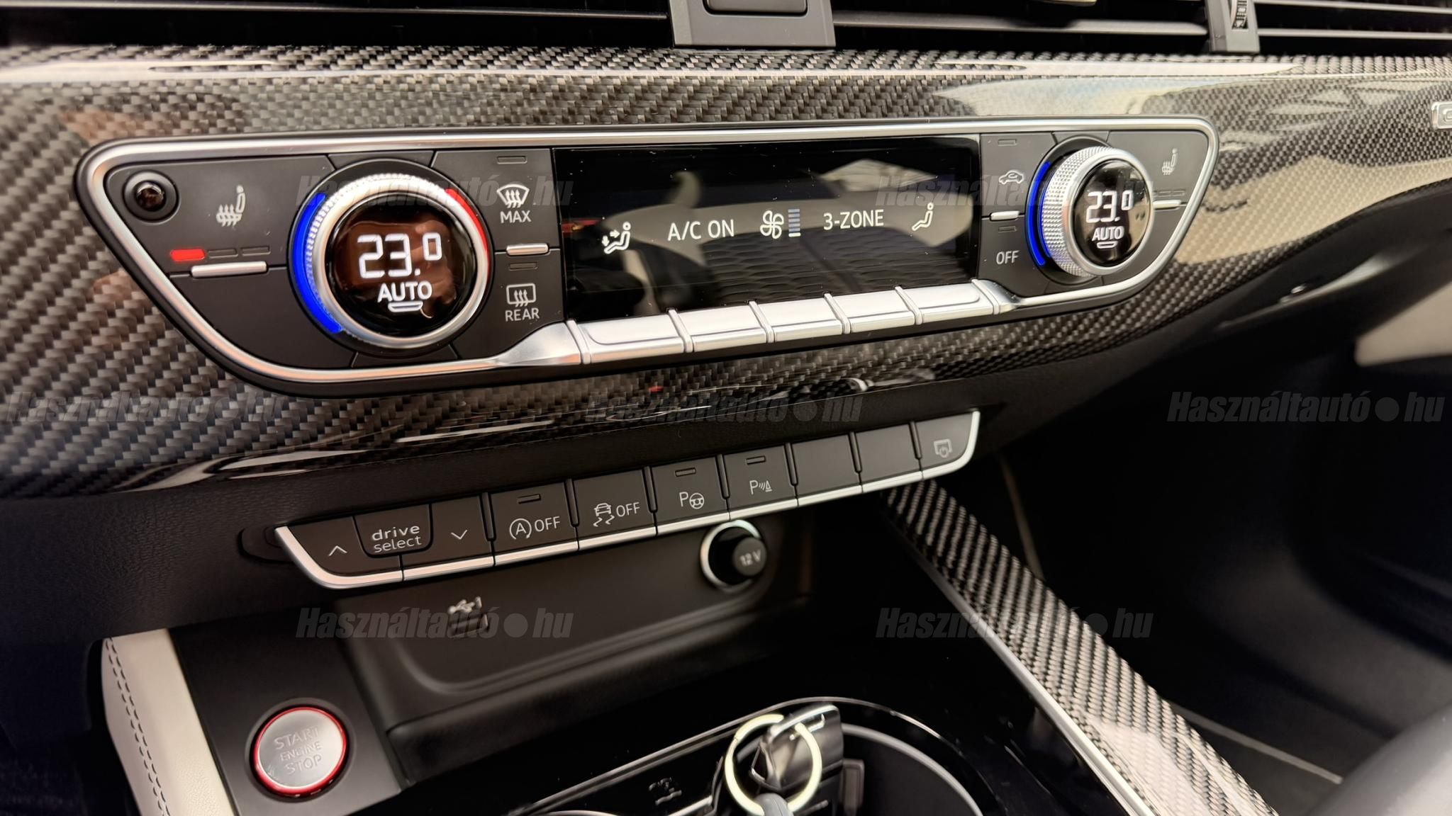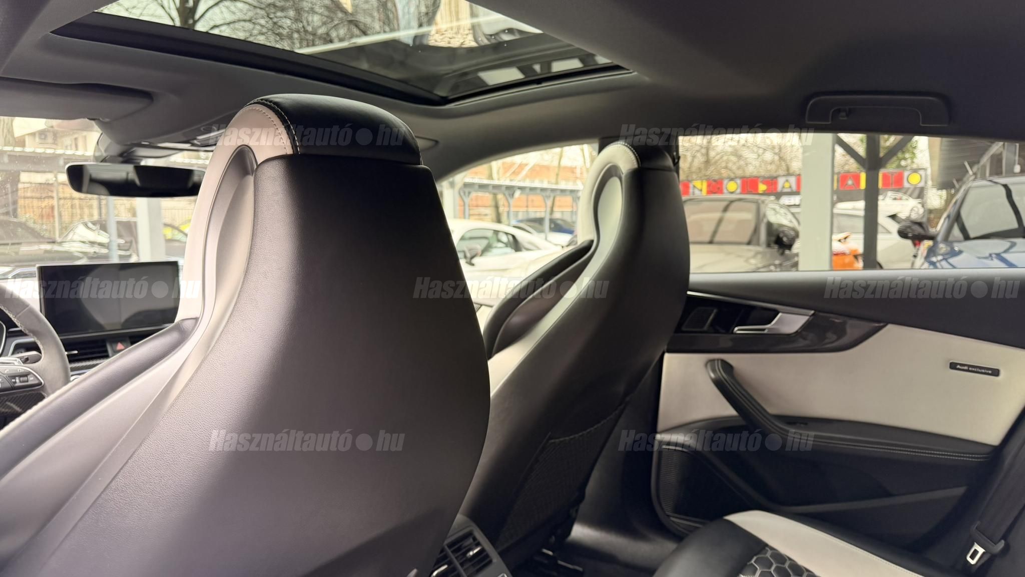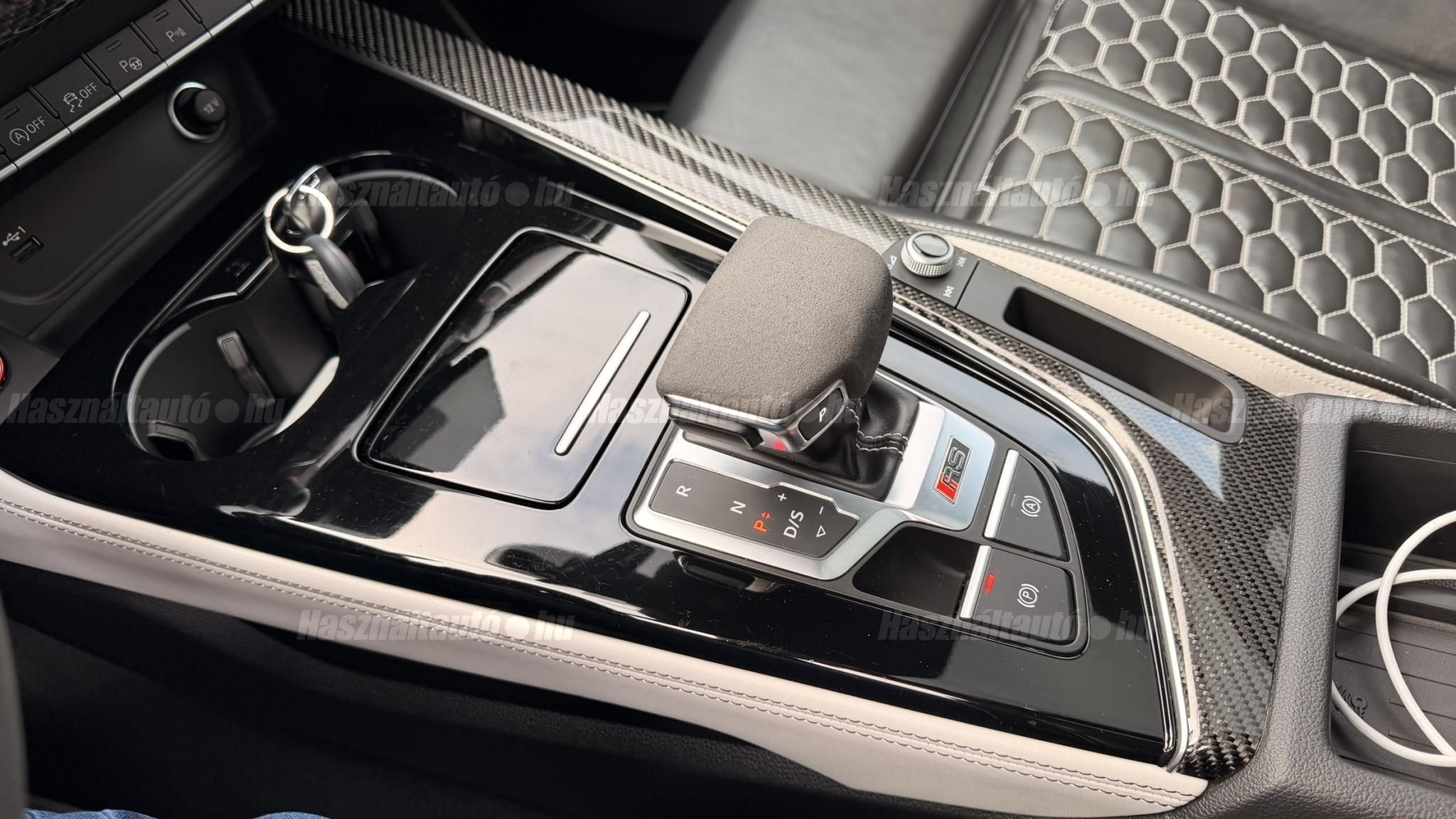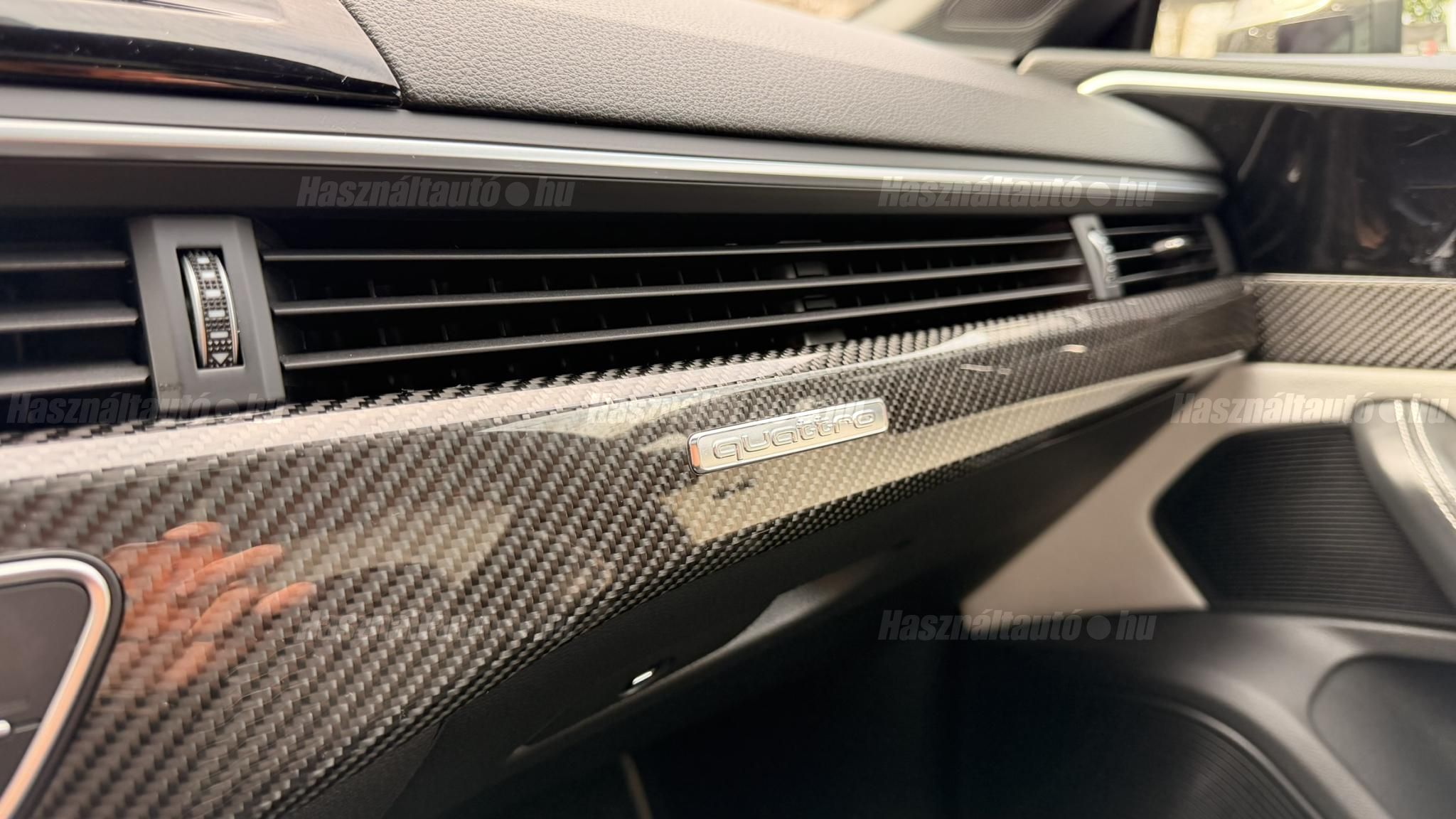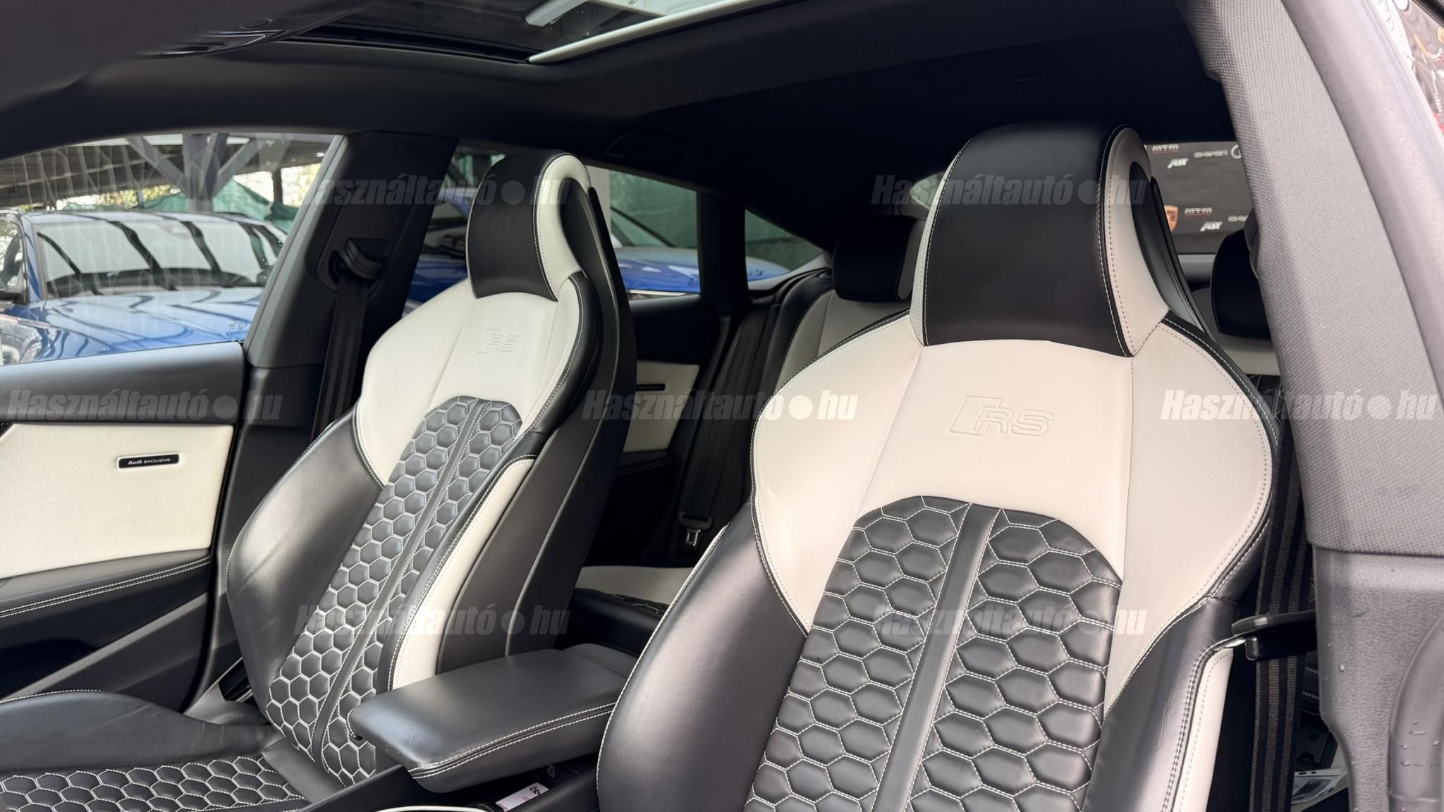 További 50 nagy felbontású kép: facebook/ingolstadtauto oldalunkon! AZ AUTÓK MEGTEKINTÉSÉHEZ MINDEN ESETBEN ELŐZETES TELEFONOS EGYEZTETÉS SZÜKSÉGES! BANKI HITELÜGYINTÉZÉSben is tudunk segíteni ez 12-84 hónapig terjedő periódusra ütemezhető. Legalább 20% önrésszel vehető fel.----------TÍPUS/ÁLLAPOT----------A TÍPUSRÓL: Az Audi palettáján kevés modell képvisel ennyire markáns, sportos karaktert, mint az Audi RS5. Szerintünk a márka egyik legjobban eltalált formája: valódi, baltával faragott, éles vonalak, pazar arányok egy autó, amely nem kér figyelmet, hanem egyszerűen megkapja.A 2,9 literes, duplaturbós V6-os benzinmotor erőtartaléka már gyári állapotban is meggyőző, a 8 fokozatú tiptronic automata váltó pedig gyors és határozott működésével tökéletesen illik a karakteréhez. A ZF 8HP az egyik legmegbízhatóbb konstrukció a kategóriában. A quattro összkerékhajtás ahogyan minden RS modell esetében itt is alapfelszereltség, így a komoly teljesítmény ellenére az autó könnyen vezethető és meglepően kezes marad.Az RS5 motorjának egyik legnagyobb különlegessége, hogy a két turbófeltöltőt nem a motor oldalára, hanem a két hengersor közé, az úgynevezett V-térbe építették be. Miért jó ez? A kipufogógázoknak rövidebb utat kell megtenniük, így a gázreakció rendkívül gyors: minimális a turbólyuk, és szinte azonnal érkezik a brutális tolóerő, amint rálépsz a gázpedálra.Ha oldalról nézed az RS5-öt, feltűnnek a szélesített sárvédőívek a kerekek felett. Az Audi tervezői ezeket az íveket az 1980-as évek legendás Ur-Quattro raliversenyautójáról kölcsönözték. Ez egy tudatos tisztelgés a múlt előtt, amely vizuálisan is jelzi: ez az autó az aszfalthoz van ragasztva.AZ ADOTT AUTÓRÓL: Gyönyörű szép fehér színű sportback. Törésmentes, fényezése szép, homogén mindenhol. A 20 colos gyári Audi Sport felnik állapota sérülésmentes. Jelenleg jó állapotú téli gumikkal szerelve. A fékrendszer állapota jó, fékbetétek nincsenek kopásjelzőn. Megkímélt beltér, kopás/karc/kiülésmentes mint az új. Szerkezetileg és motorikusan hibátlan, minden extra tökéletesen működik. Végig az autó márkaszervizben Porsche Pest-nél kapta a teljes körű karbantartást, minden szervizdokumentáció rendelkezésre áll. Minden tartozék, összes gyári dokumentáció, vezetett szervizkönyv, 2db eredeti kulcs rendelkezésre áll.----------EXTRÁK----------Külső carbon csomag Belső carbon csomag Elöl-hátul kameraElöl-hátul parkolóradarSávtartó rendszerHolttérfigyelő rendszerTávolságtartó tempomatKerámia fék 360-fokos kamera Virtual Cockpit Plus Bang&Olufsen premium autohifi, Audi ConnectTáblafelismerőHead up display, Masszázsülések 2x, Ülésfütés, 3 zónás digitális klíma, Élektromosan állítható memóriás vezetőülésVilágitó alumínium küszöbbetétek, Alcantara sportkormányFékasszisztens, Bi-color S-sport kagylóülések méhsejtrácsos fehér kontrasztvarrássalFull bőr kárpitozás, S fekete tetőkárpit, Elektronikusan nyíló/záródó csomagtérajtó, Nyitaható panorámatetőMultikormány, Kormányváltó, Audi Drive Select, Magyar menü, Vezeték nélküli telefontöltő a középkonzolon, Magyarnyelvű hangutasítás, Audi Pre Sense, Isofix, Magnetic Ride, Ledes indexek, Külső/belső fénycsomag, Audi Ceramic féknyergek, Fekete-fehér nappabőr ülések, Start/stop, Színezett hővédő üvegezés, Komfort bejutás, Kulcsnélküli indítás, SRA…AUTÓINKAT 1-3 ÉVIG TERJEDŐ GARANCIÁVAL IS TUDJUK ÉRTÉKESÍTENI, MEGÁLLAPODÁS SZERINT. Autóbeszámítás vagy bármilyen kérdés esetén a lenti telefonszámon keressen vagy WhatsApp-on, Viberen is elérhetőek vagyunk (email-t ne írjon!). TOVÁBBI KÜLÖNLEGES AUDIKÉRT KÖVESSE KÍNÁLATUNKAT FACEBOOKON: INGOLSTADTAUTO |